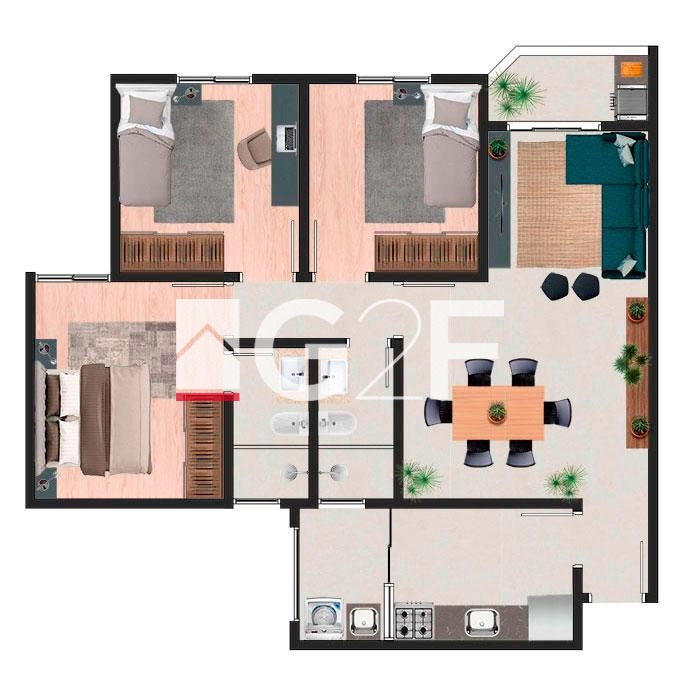 Os apartamentos conta com ambientes amplos, terraço gourmet integrado ao living e à cozinha, trazendo iluminação natural, amplitude e praticidade...
