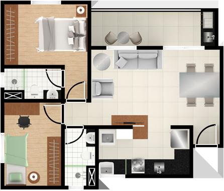 Os apartamentos conta com ambientes amplos, terraço gourmet integrado ao living e à cozinha, trazendo iluminação natural, amplitude e praticidade...