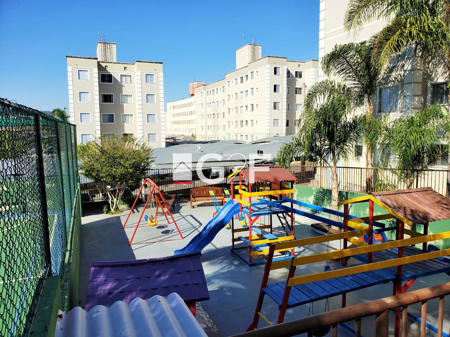 O condomínio possui salão de festas, churrasqueira, quadra poliesportiva, playground e portaria 24 horas.