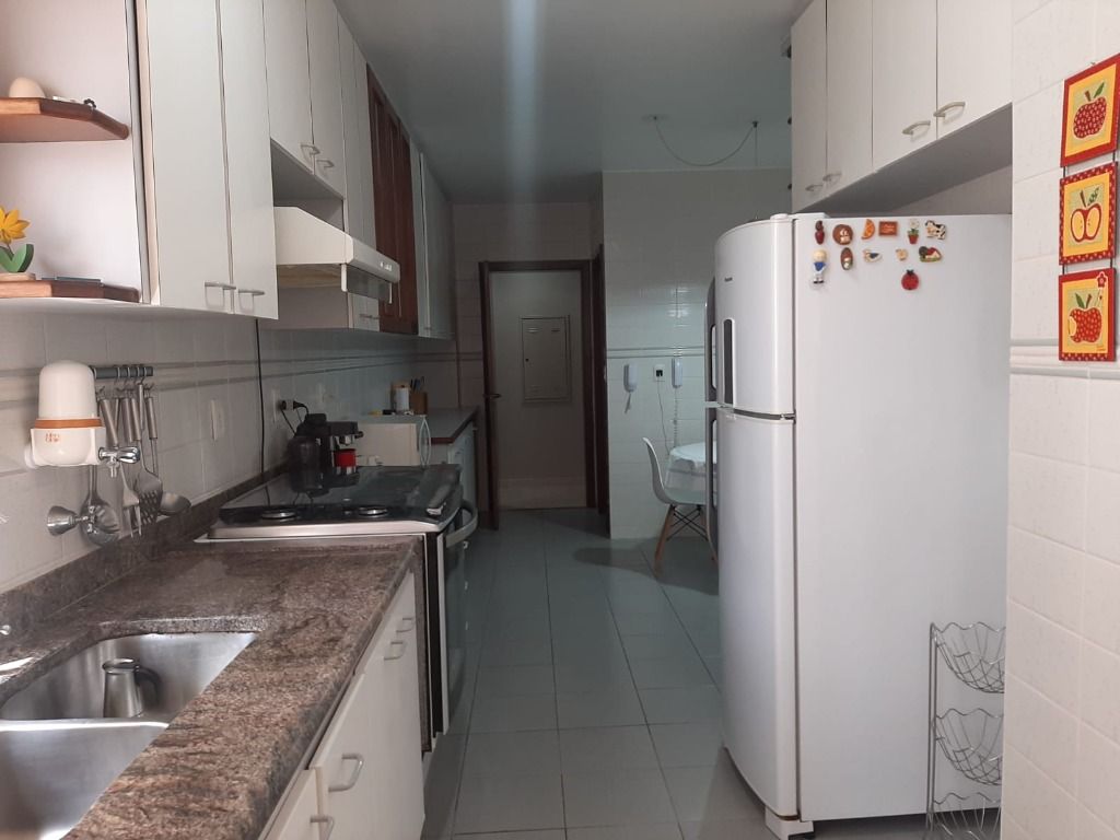 Copa, cozinha rica em planejados, com entrada de serviço, área de serviço arejada, quarto e banheiro serviço. Lazer do condomínio com piscina, sauna, fitness e salão de festas.