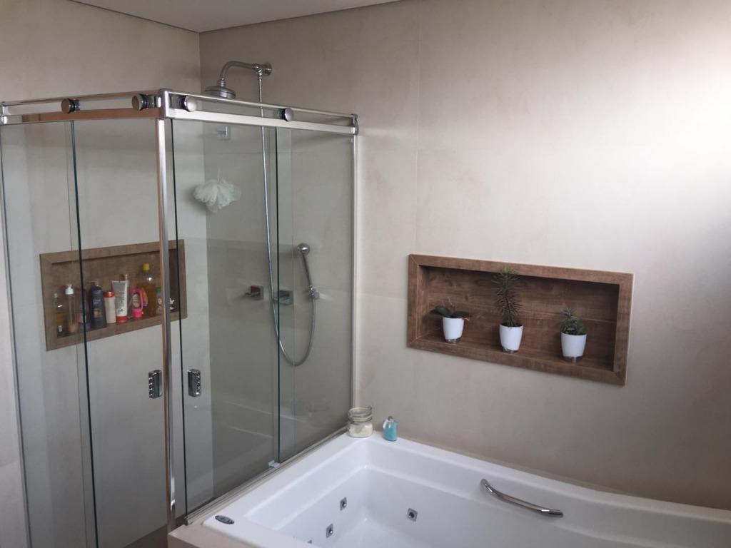 Todo atualizado, com 204m², 3 quartos sendo 1 suíte com closet e banheira, sala de estar, sala de jantar, sala para home theater, lareira, lavabo, cozinha rica em armários, roupeiros no corredor, área de serviço, dependência completa de serviço, 3 vagas de garagem (2 cobertas). Entrada social e de serviço independentes. Condomínio conta com salão de jogos, quadra poliesportiva, piscina, churrasqueira e salão de festas.