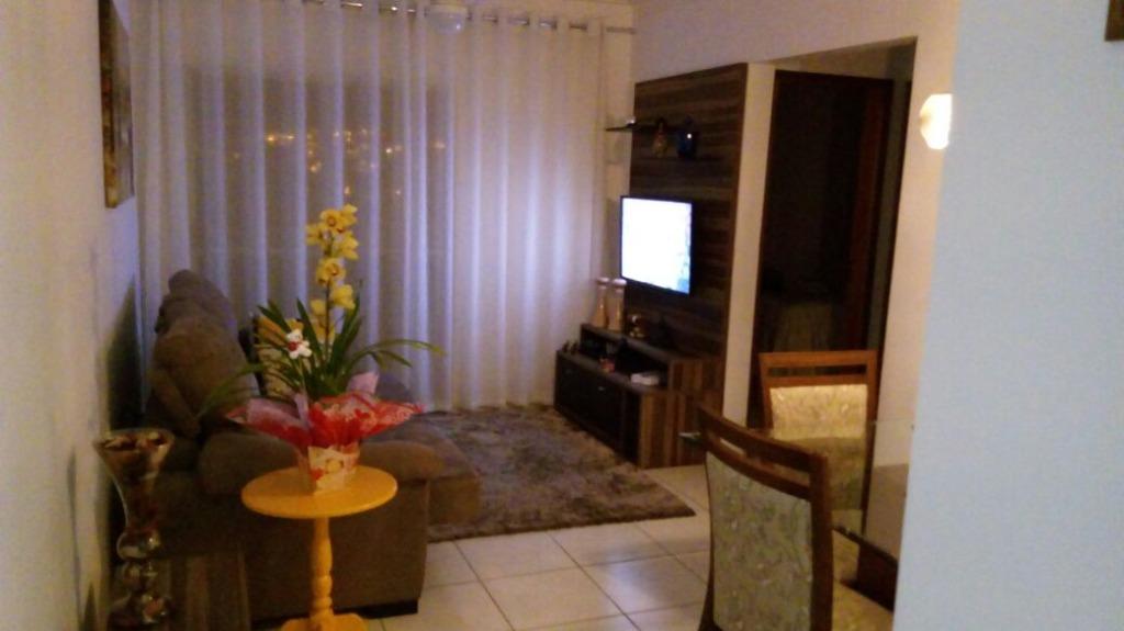 Distribuído em 02 quartos, Banheiro Social com Blindex, living 02 ambientes com sacada, cozinha com armários, lavanderia e 02 vagas .Condomínio com portaria e área gourmet com churrasqueira, água e gás incluso.