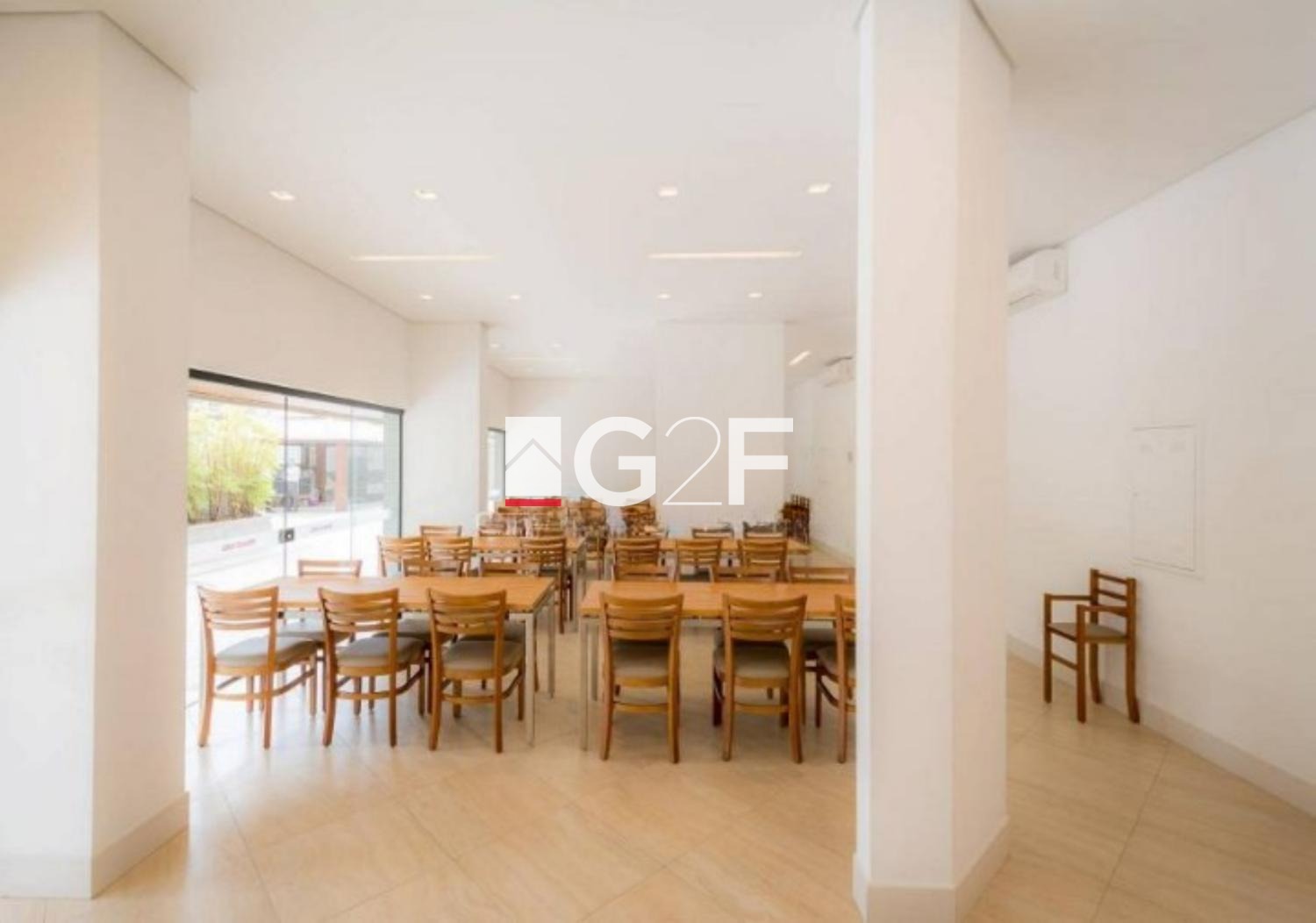 Lazer com salão de festas para 50 pessoas sentadas, piscina, academia, sauna e playground.