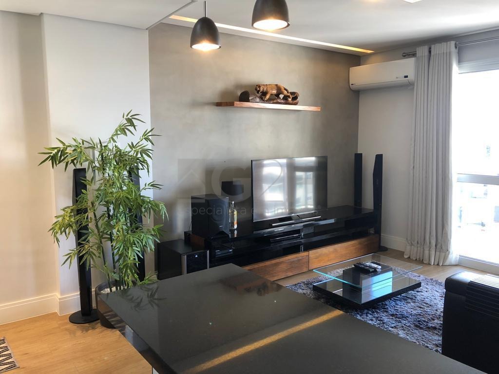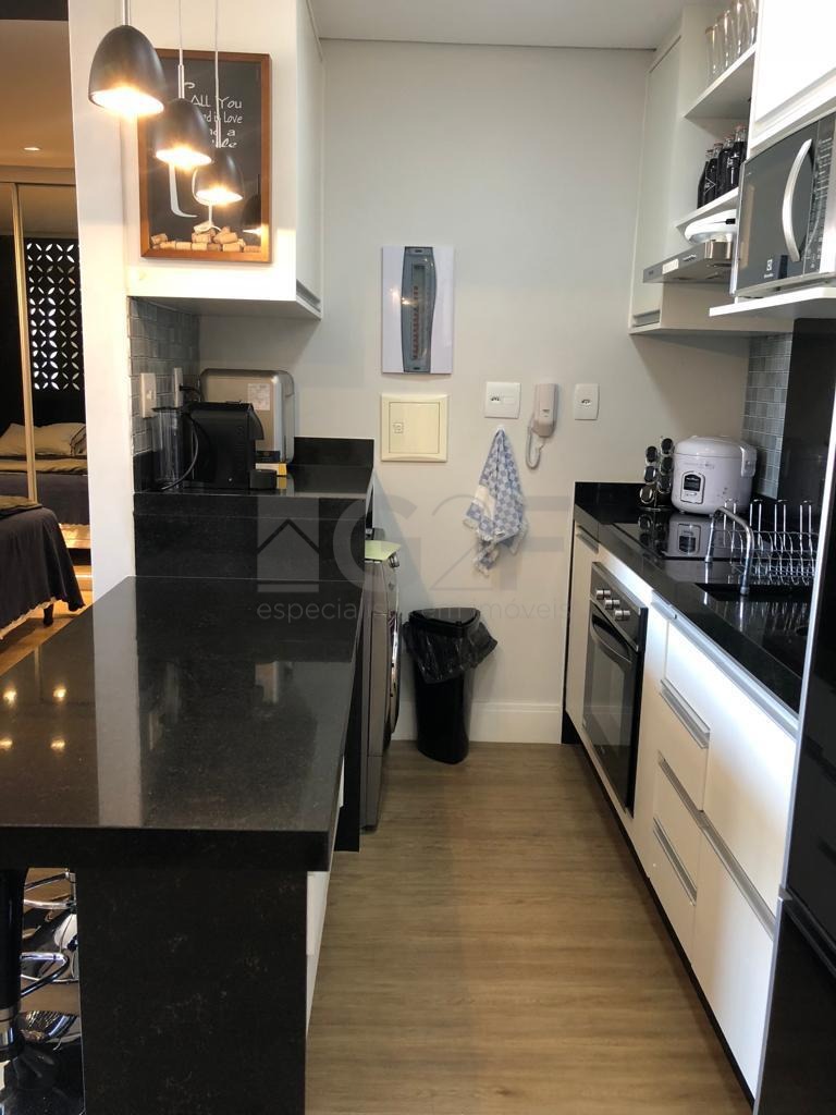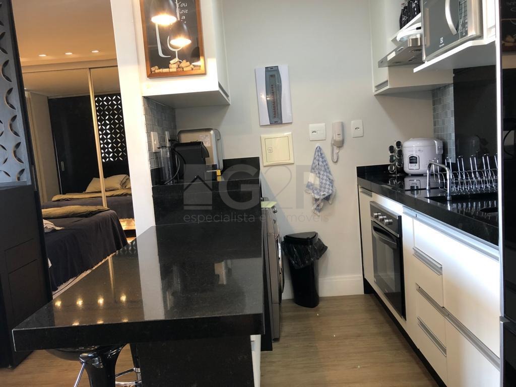 Apartamento à venda totalmente mobiliado. Com 1 quarto, banheiro, sala, sacada, cozinha, área de serviço e 1 vaga de garagem.