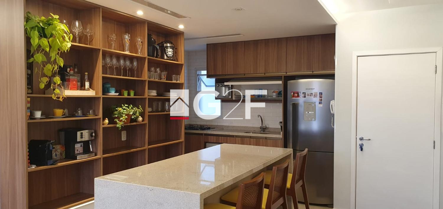 Área de serviço isolada da cozinha com armário e despensa, 2 dormitórios suítes , 1 lavabo, Móveis planejados, Projeto de iluminação em LED, Ar Condicionado instalado nos 2 quartos + sala de TV, sacada com tomada livre e Depósito na garagem,2 vagas de garagem cobertas no subsolo.