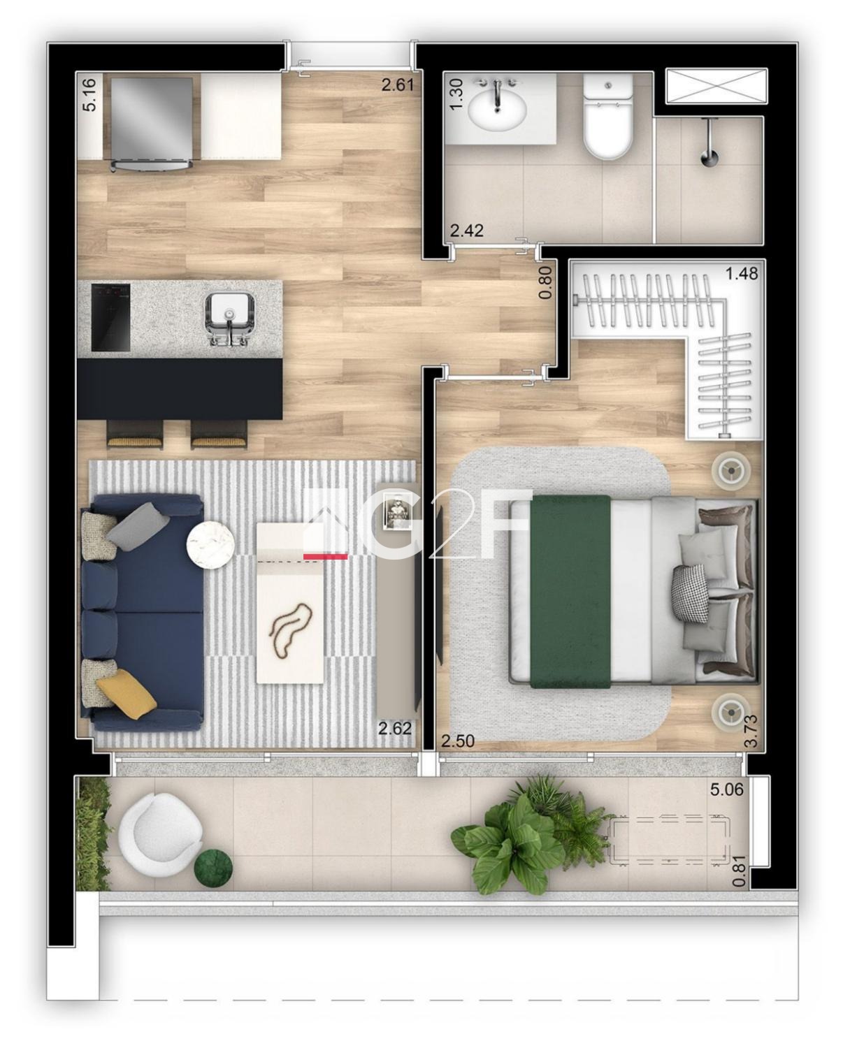 Apartamento Studio de 36 m², com 1 dormitório em um condomínio com lazer completo com piscina, churrasqueira, academia, brinquedoteca, playground, pet place, coworking, lounge, espaço gourmet, lavanderia, delivery, salão de jogos e de festas, portaria e lavanderia.