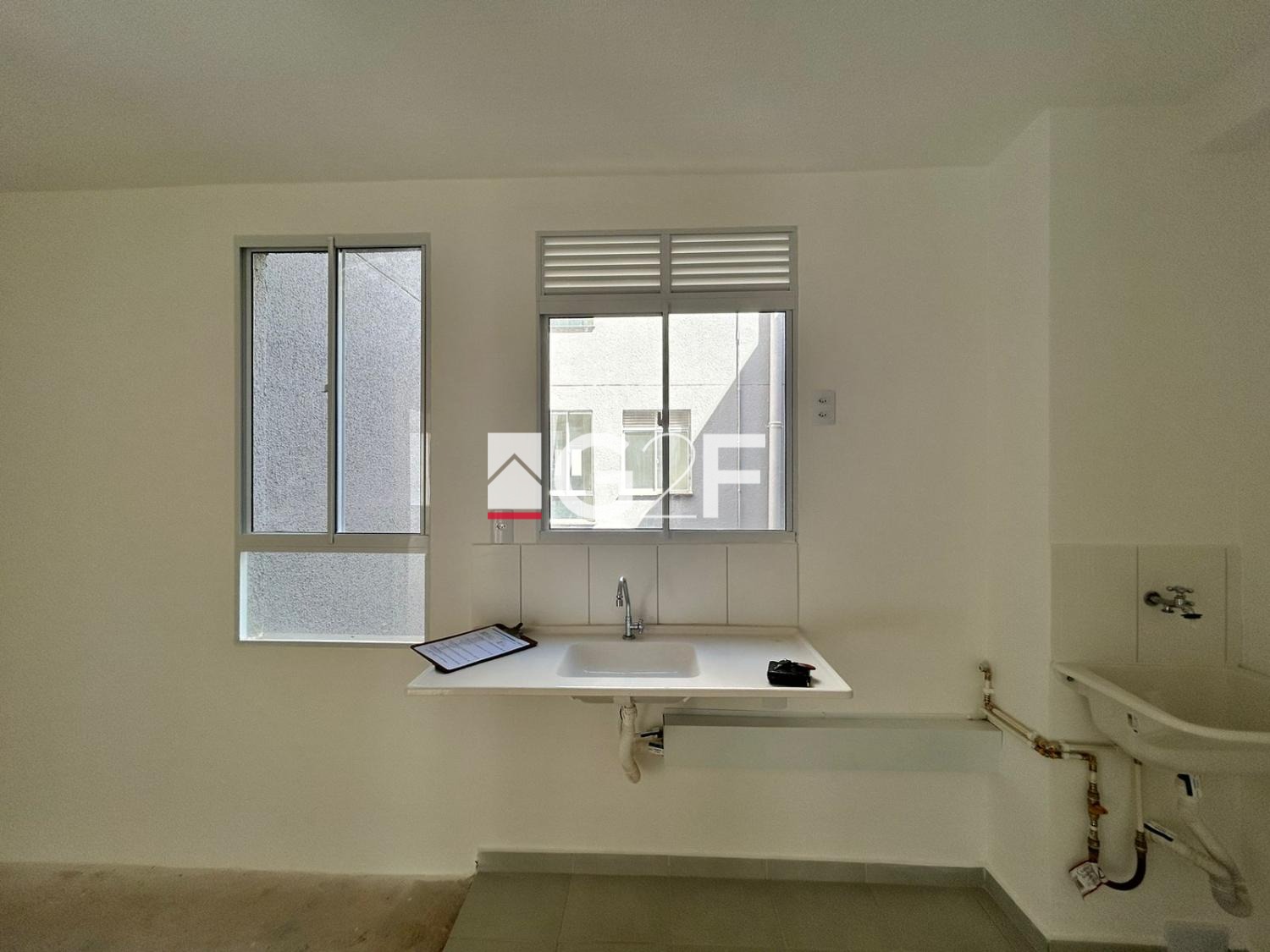 Apartamento com piso no banheiro e cozinha, demais dependências no contra piso.