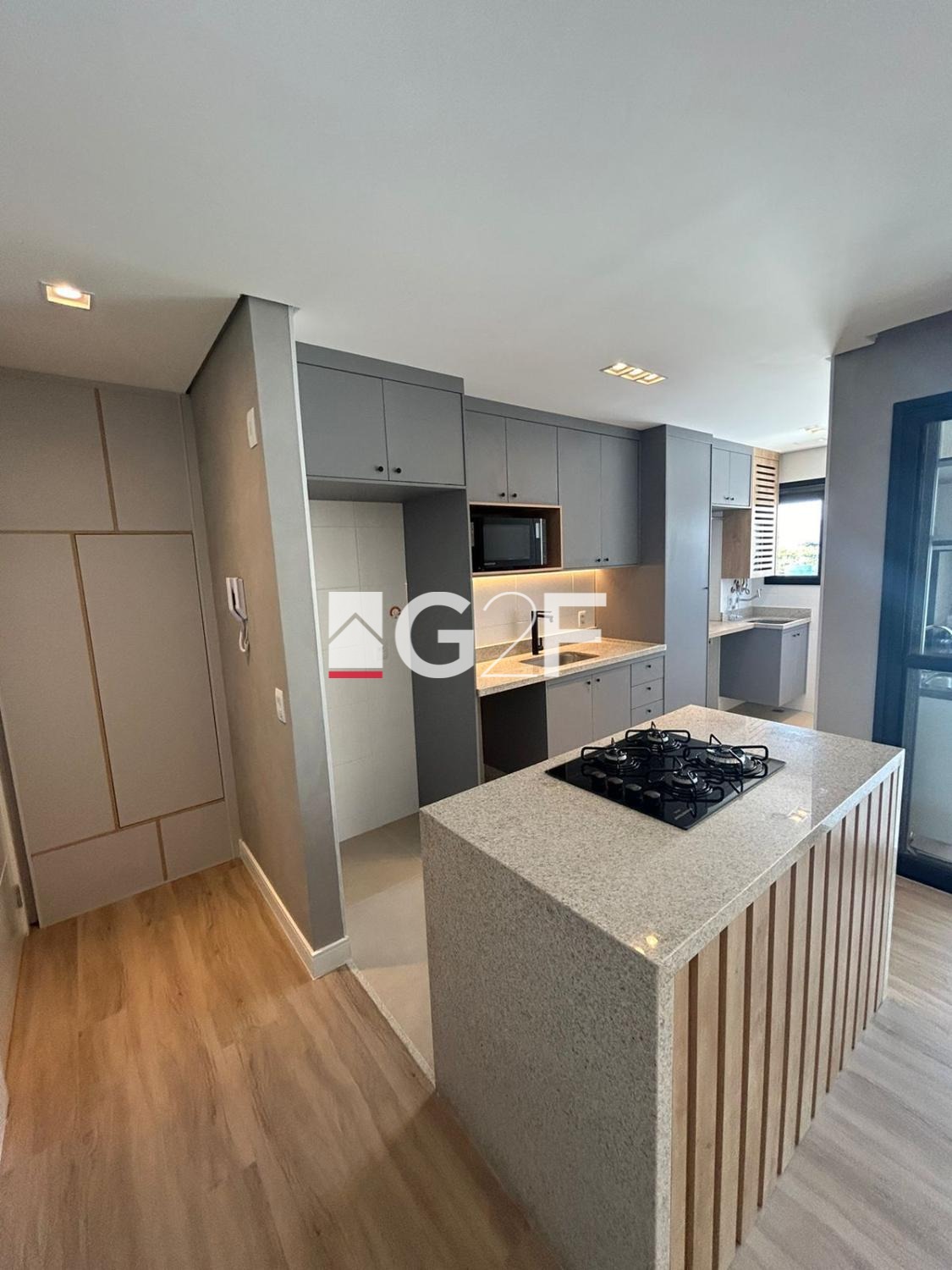 Com um living espaçoso para dois ambientes integrados à varanda gourmet, este imóvel traz um projeto luminotécnico e móveis planejados de alta qualidade da marca Simonetto. A cozinha está equipada com cooktop, micro-ondas e forno elétrico com função air fryer, todos da linha Brastemp. Conta com ar-condicionado nos dois quartos e na sala, além de aquecedor a gás. A varanda gourmet é completa, com churrasqueira a carvão e fechamento em vidro.