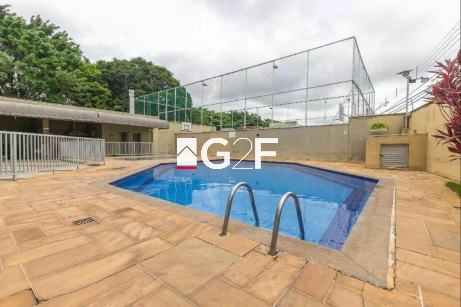 Área de lazer bem arborizada e completa para toda família com churrasqueira, piscina, quadra poliesportiva e playground.