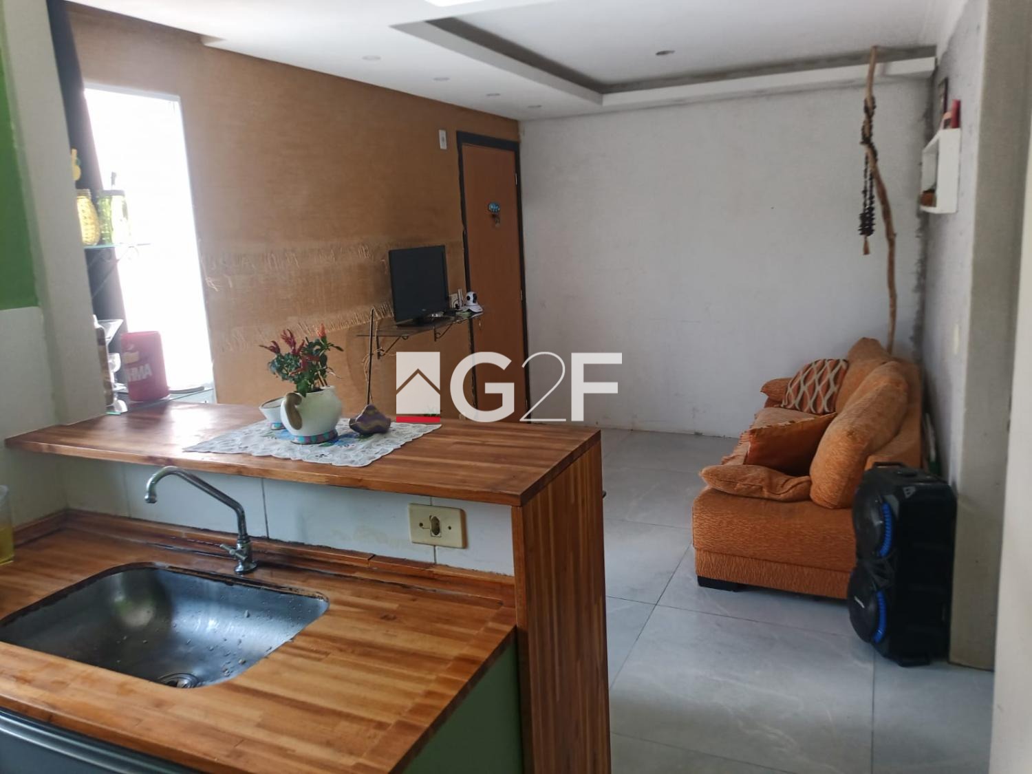 Imóvel com 2 quartos, sala, cozinha estilo americana, banheiro e garagem coberta.