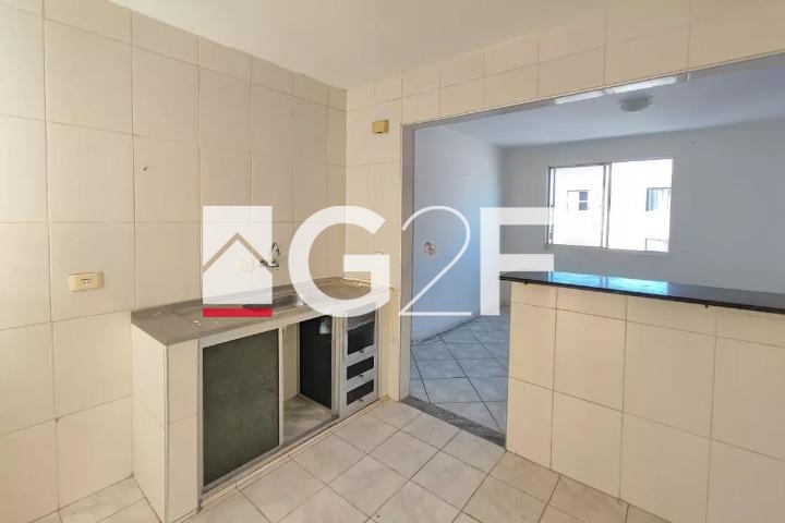 Imóvel com dois quartos reformado, banheiro, cozinha e garagem.
