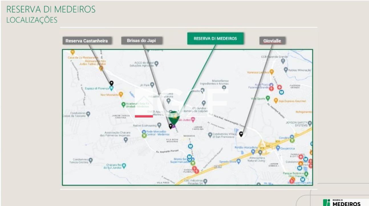 O Reserva di Medeiros é um condomínio residencial de apartamentos localizado no bairro Medeiros, em Jundiaí, uma região em constante crescimento e valorização imobiliária da cidade. O empreendimento foi planejado para oferecer conforto, segurança e praticidade no dia a dia, combinando a tranquilidade de um bairro residencial com fácil acesso às principais vias da região.