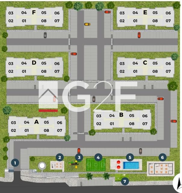 O condomínio conta com apartamentos de 2 dormitórios, com plantas funcionais que proporcionam bom aproveitamento dos espaços, incluindo sala para dois ambientes, cozinha, banheiro, área de serviço e 1 vaga de garagem. As unidades foram pensadas para atender famílias que buscam um imóvel confortável, com boa distribuição interna e praticidade no dia a dia.