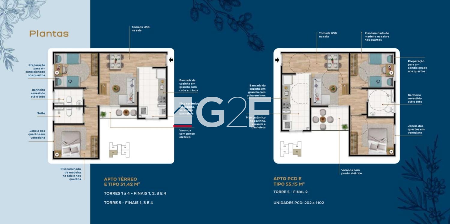 Apartamentos inteligentes de 2 dormitórios com suíte, projetados para oferecer funcionalidade e aconchego em cada ambiente. Com apenas 4 unidades por andar e 2 elevadores por torre, você garante mais privacidade e comodidade no seu dia a dia. Acabamentos modernos, varanda para seus momentos de descanso e preparação para ar-condicionado completam o cenário ideal para viver bem.
