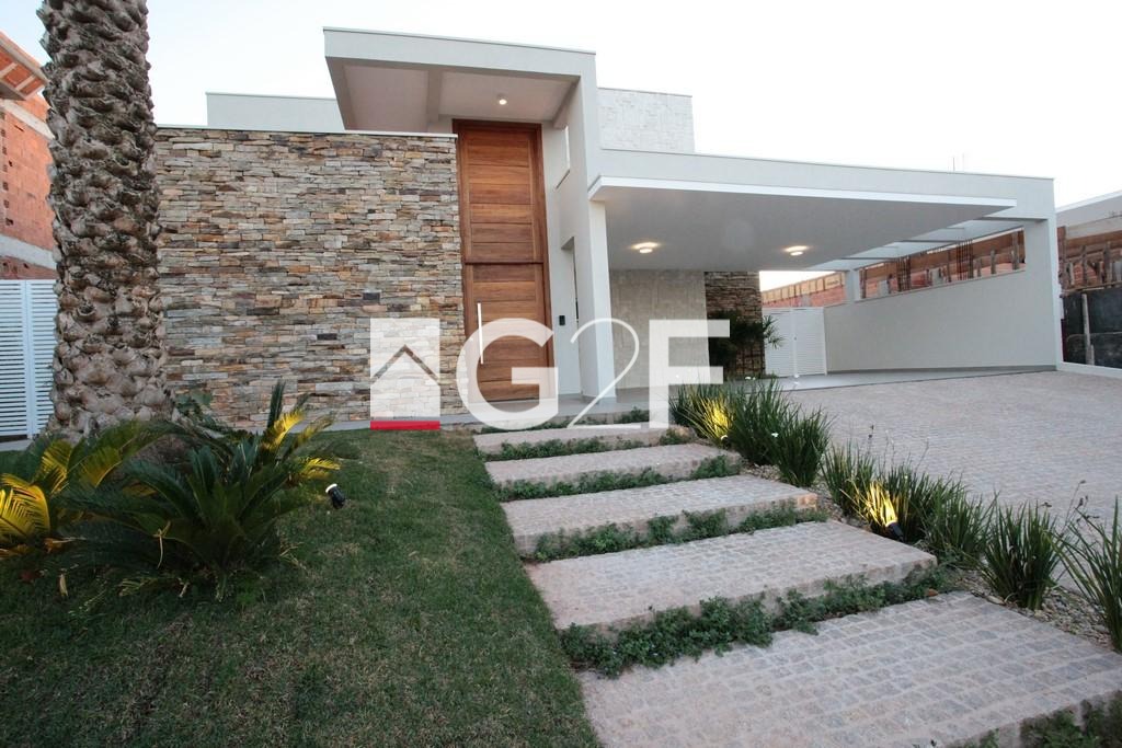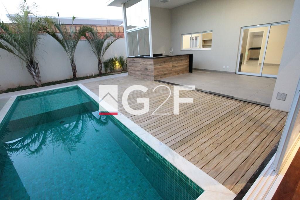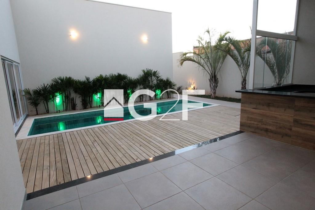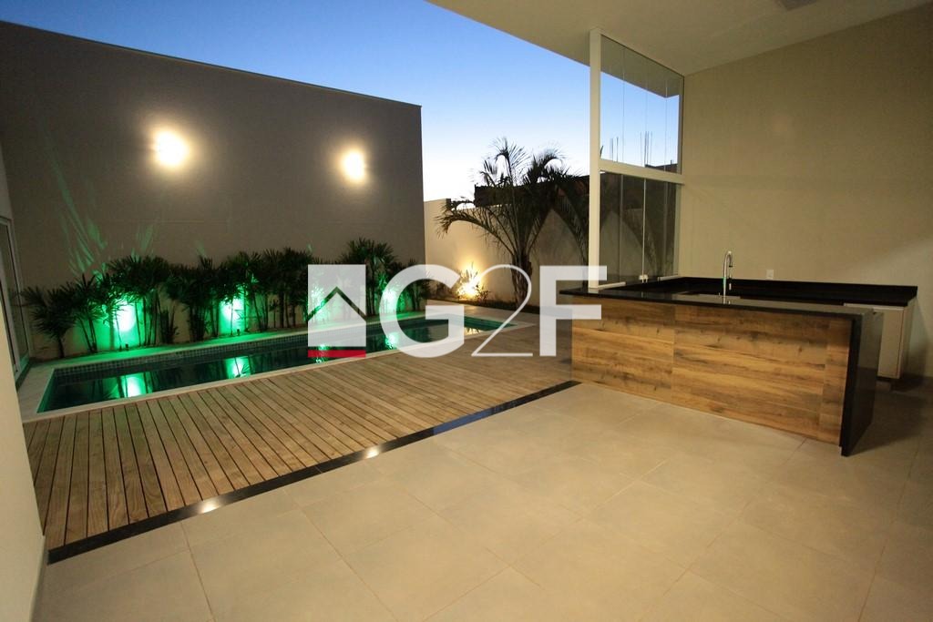 Magnífica casa térrea com projeto ousado e singular, o melhor condomínio de alto padrão da região. Acabamento nobre e sofisticado. Constituída por hall de entrada, home theater/home-office (reversível para suíte), sala para 2 ambientes com pé direito duplo, 3 suítes com closet, cozinha planejada com despensa, lavanderia, piscina com deck, espaço gourmet com churrasqueira, depósito externo, vestiário para a piscina, banheiro de serviço, floreira, horta e 6 vagas de garagem.