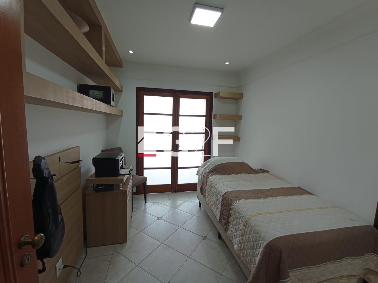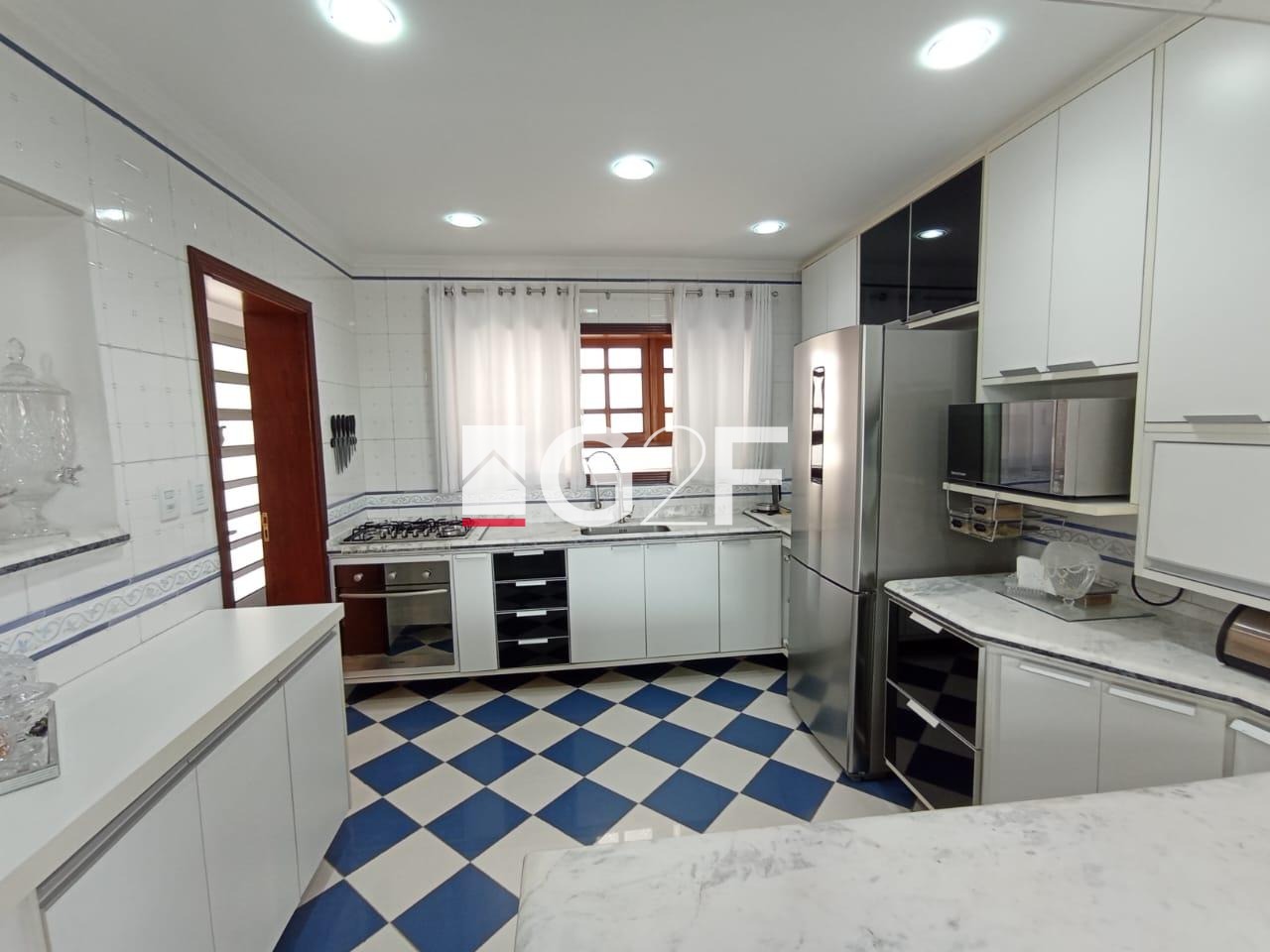 No térreo, living amplo com portas balcão que se abrem para a área de lazer, cozinha americana planejada com cooktop e forno embutido, além de lavanderia. Escada de acesso ao piso superior com guarda corpo de aço escovado. No andar de cima, sala de TV, 3 quartos com varanda e armários, incluindo 2 suítes; suíte máster possui banheiro espaçoso com banheira.