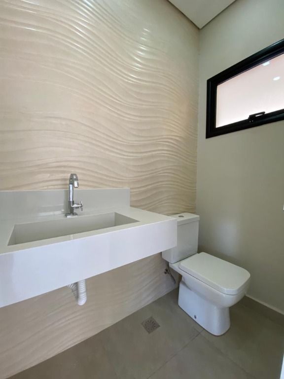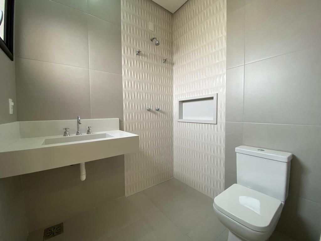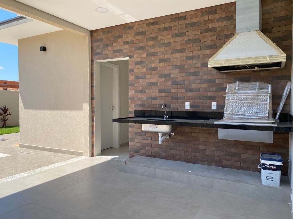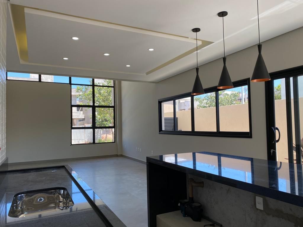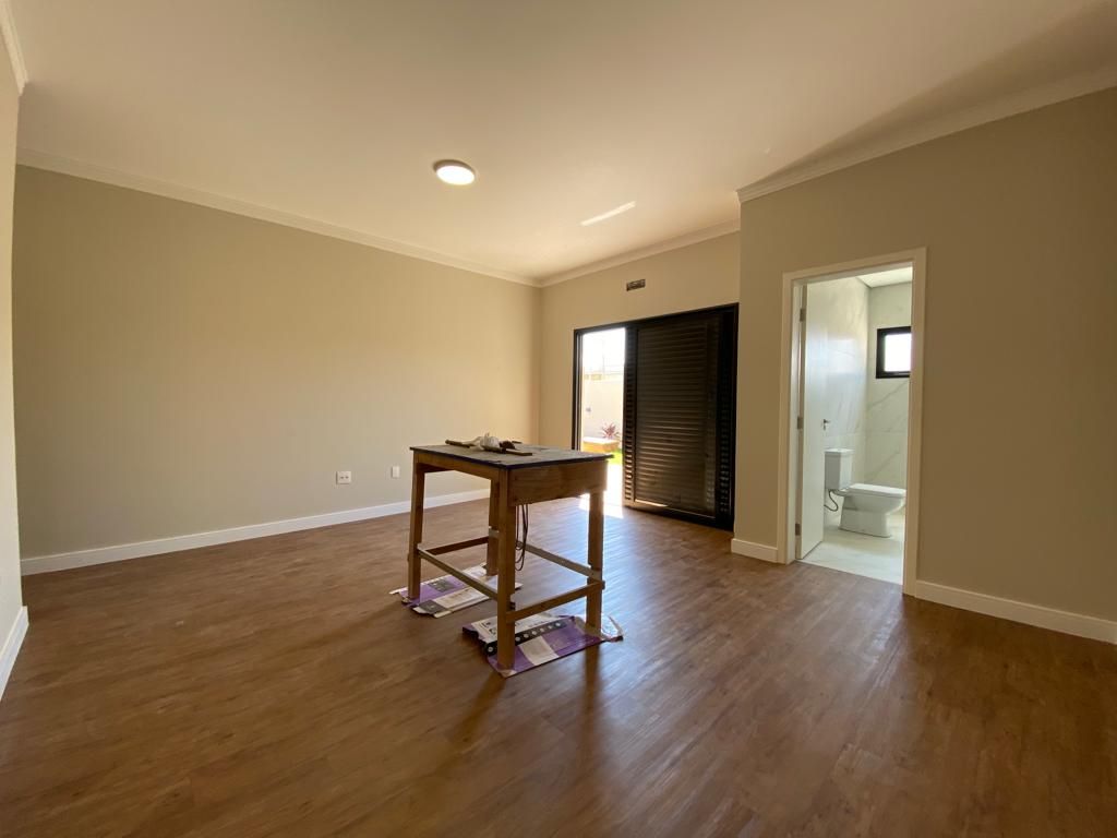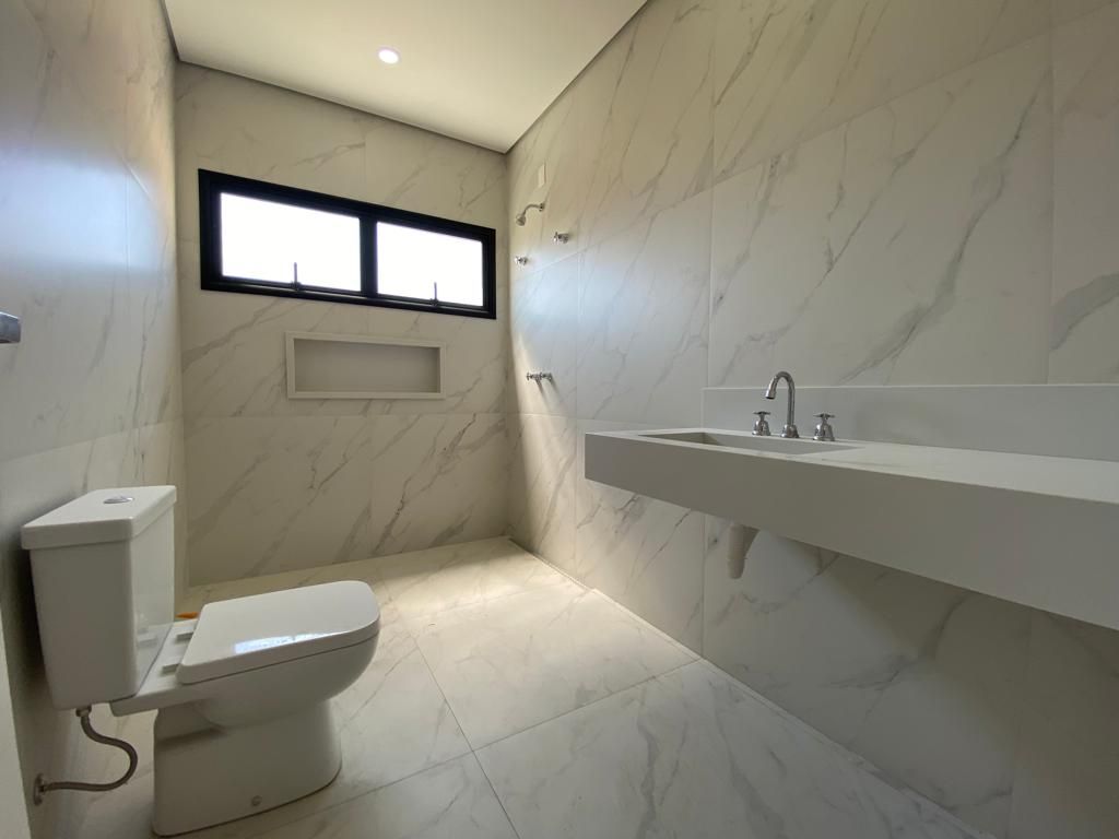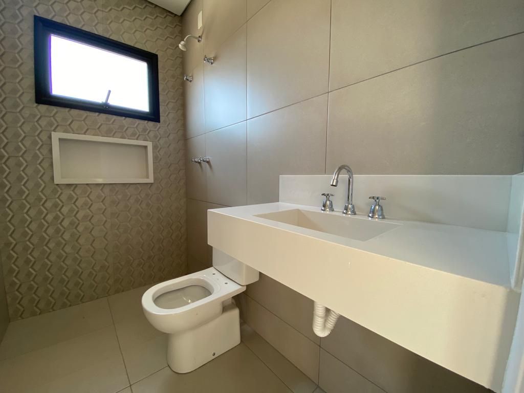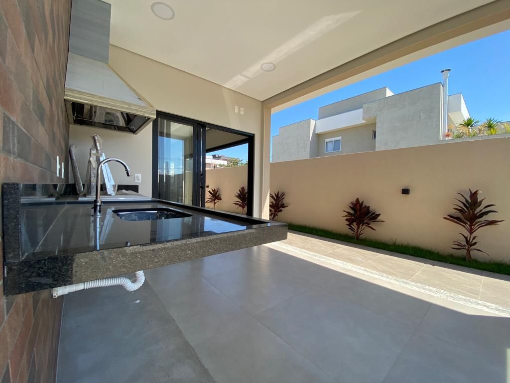 Casa térrea com 194 m² de área construída com 360 m² de terreno plano, parte alto do condomínio, com 3 quartos, 3 suítes, sala com pé direito duplo integrado com a cozinha tipo americana, armário na garagem, área de serviço, quintal com piscina e churrasqueira, 4 vagas de garagem sendo 2 cobertas.