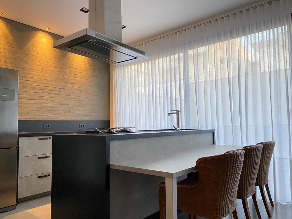 Casa térrea no Residencial Villa Lobos! São aproximadamente 300 m² de construção, muito bem distribuídos. 3 suítes, todas com ar condicionado, sendo a suíte master com closet. Sala ampla + estar + lavabo. Home Theather. Ampla cozinha, toda planejada e integrada com a sala de jantar. Lavanderia e despensa com armários. Área de churrasqueira e piscina com depósito. Acabamento de alto padrão, todo em piso porcelanato Portobello e Assoalho de madeira IndusParquet. Louças e metais Deca. Armários Kitchens em todos os ambientes. Cortinas em todos ambientes.
