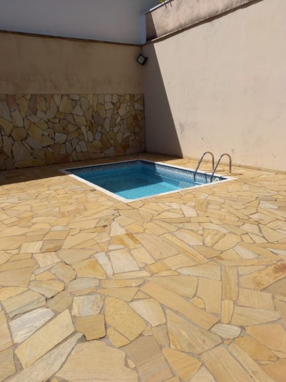 São 518m² de terreno, com 293 m² de construção, 4 vagas de garagem, piscina e amplo quintal com churrasqueira. São 3 quartos em cima, sendo 1 suíte, e 1 banheiro que atende os outros 2 quartos. A suíte possui closet e uma ampla sacada. Na parte inferior um outro dormitório que serve também como escritório. Cozinha planejada, lavanderia e uma entrada de acesso à casa pela garagem. Agende uma visita e venha se apaixonar. Condomínio com apenas 50 lotes.
