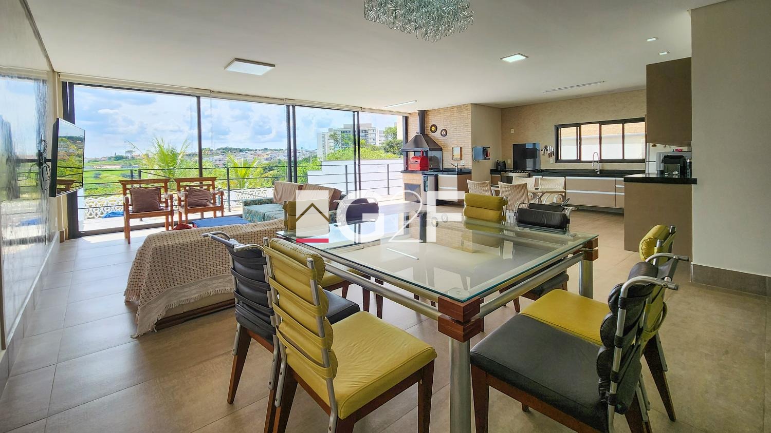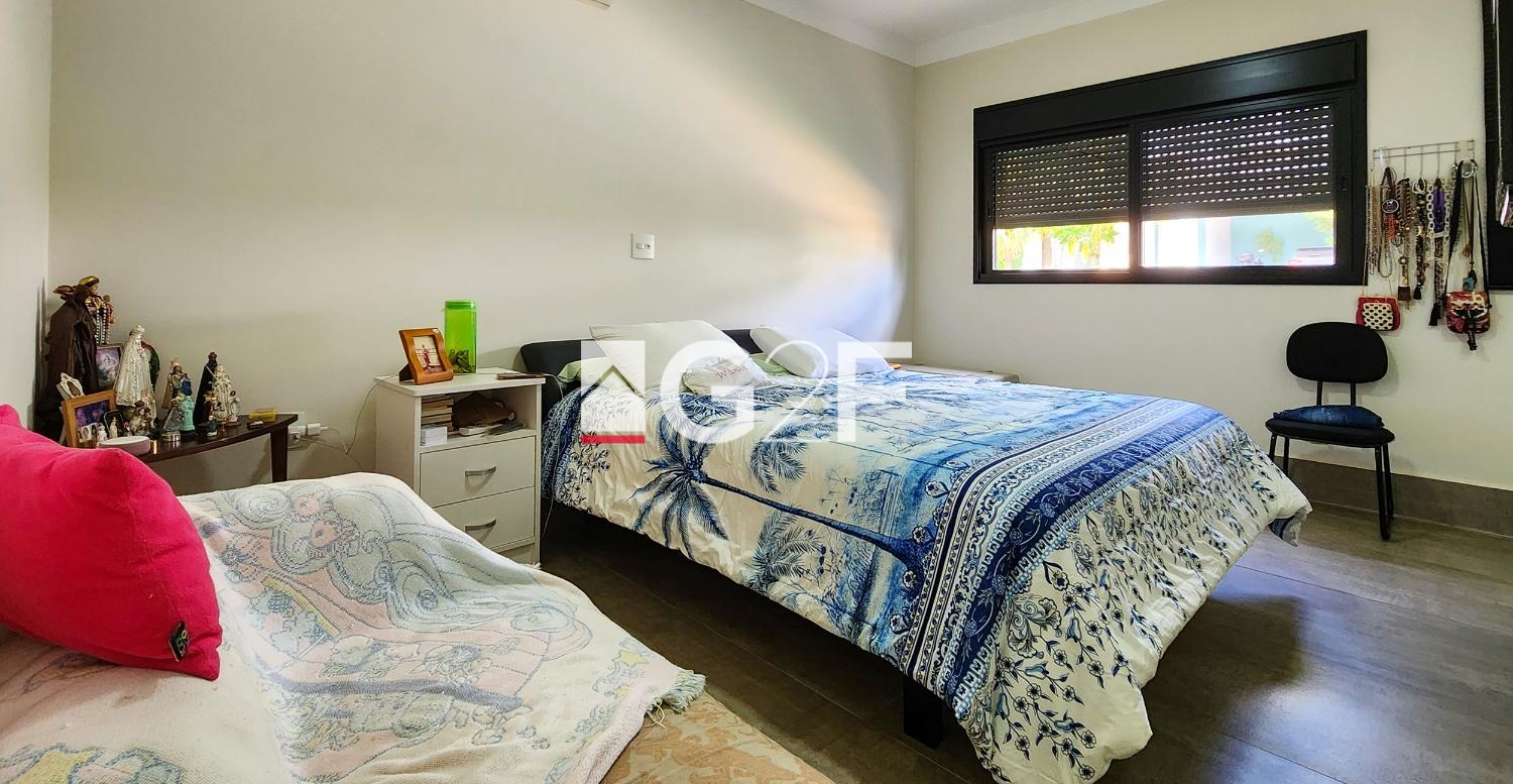Com linda vista permanente, 4 quartos sendo 2 no térreo, a master com closet e ar condicionado, banheiros individuais e ducha única, mais 2 suítes no piso superior e estar intimo, e ampla varanda. Sala integrada com cozinha americana e espaço gourmet com churrasqueira e piscina aquecida, Sala de Cinema, lavabo e área de serviços com quarto de despejo. Tem várias árvores frutíferas e um espaço amplo para oficina e armazenagem.