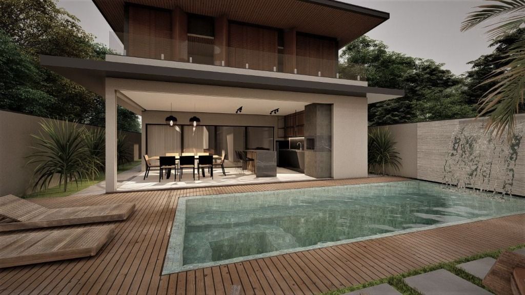 São 3 quartos todos suítes no piso superior sendo a máster com closet bem generoso! No piso térreo conceito aberto com total integração da sala de estar, jantar e cozinha! O gourmet conta com churrasqueira, banheiro de apoio e piscina! Possuí escritório reversível para suíte térrea e home home theater!