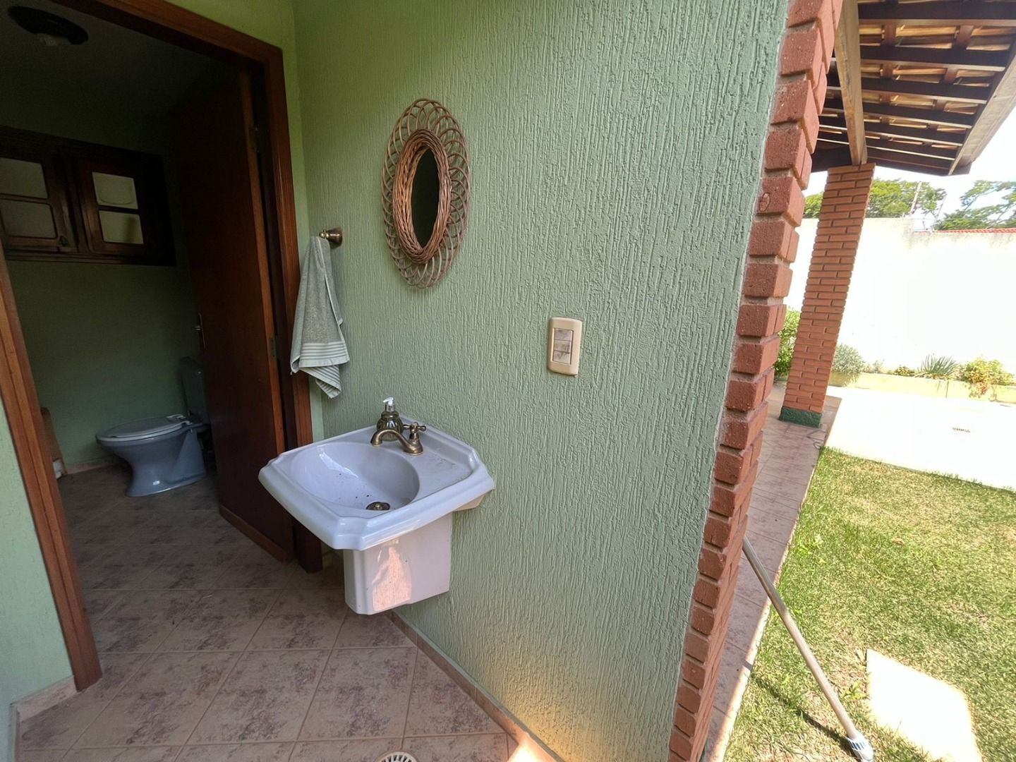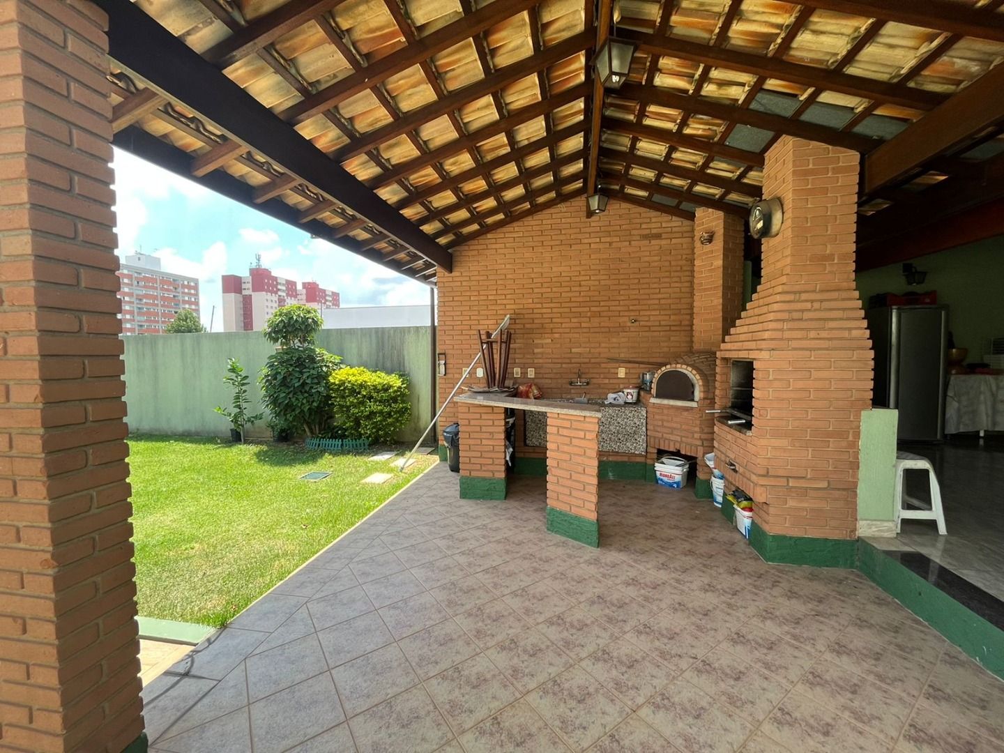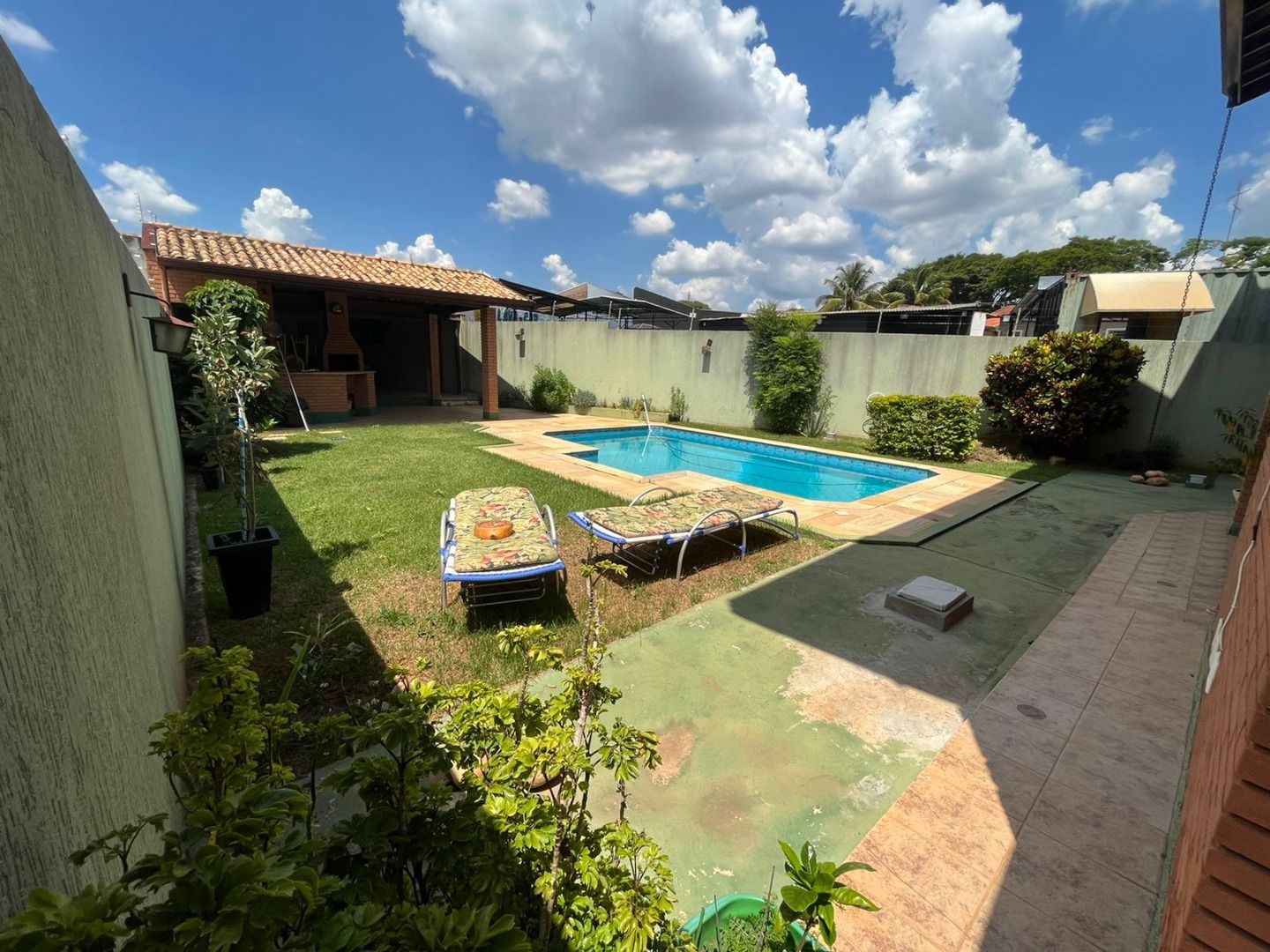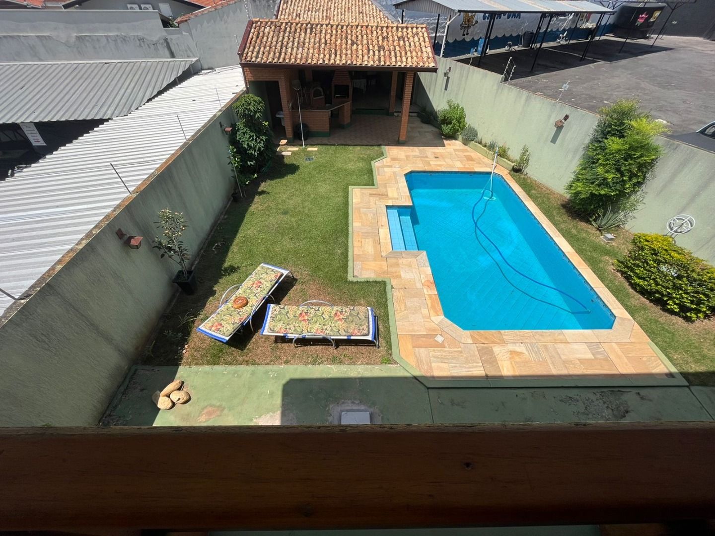 Lindo quintal, com horta, piscina, e área Gourmet completa com churrasqueira, forno a lenha, TV, armários, e banheiro.
