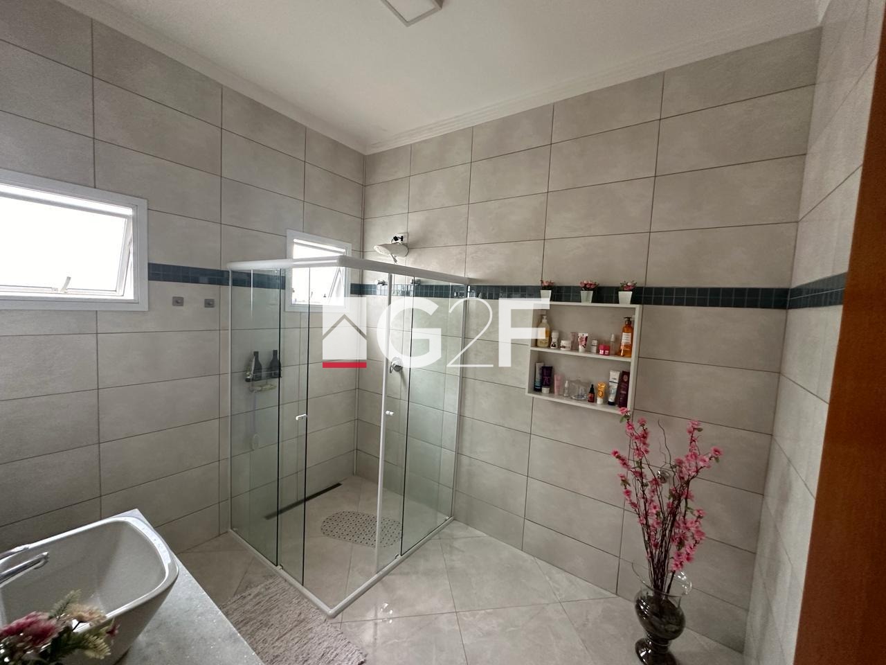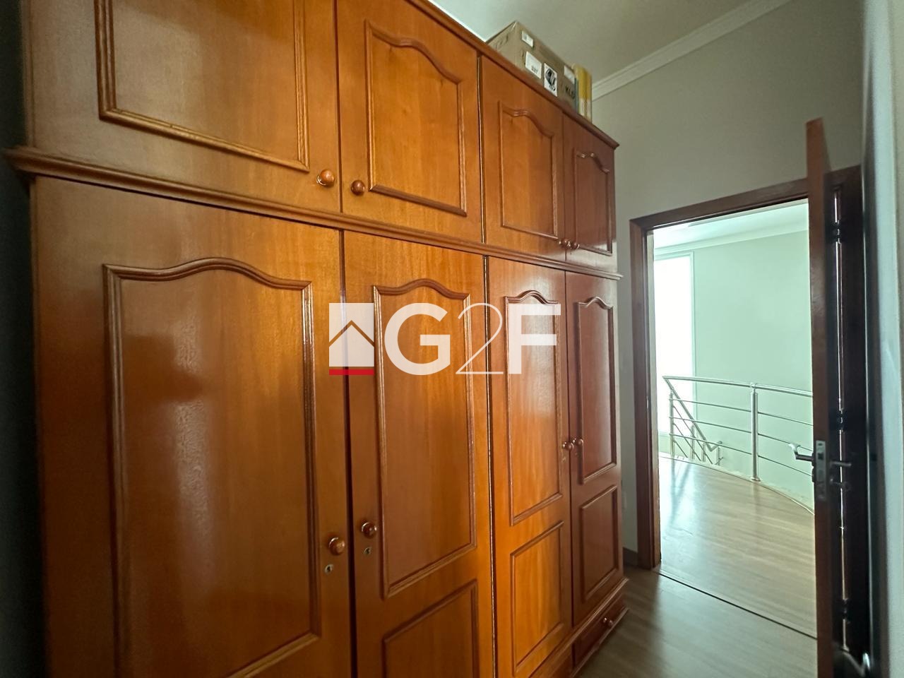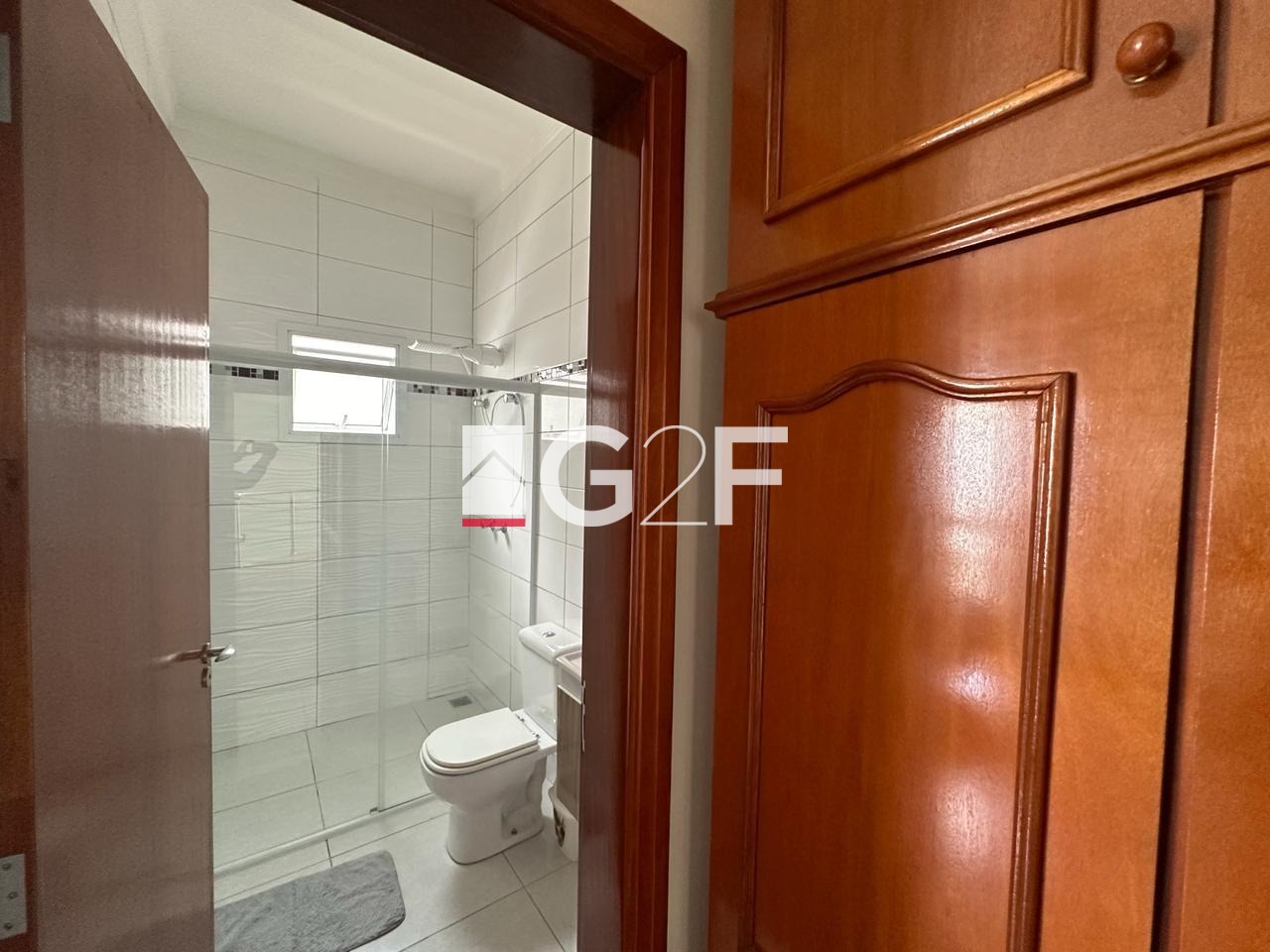 No andar superior, uma sala íntima acolhedora é ideal para momentos de relaxamento em família. A casa possui três suítes amplas, todas com banheiros bem espaçosos e equipados com blindex. A suíte master destaca-se pelo seu closet e pelo espaço generoso. Todos os quartos possuem sacadas, proporcionando excelente ventilação e iluminação natural.
