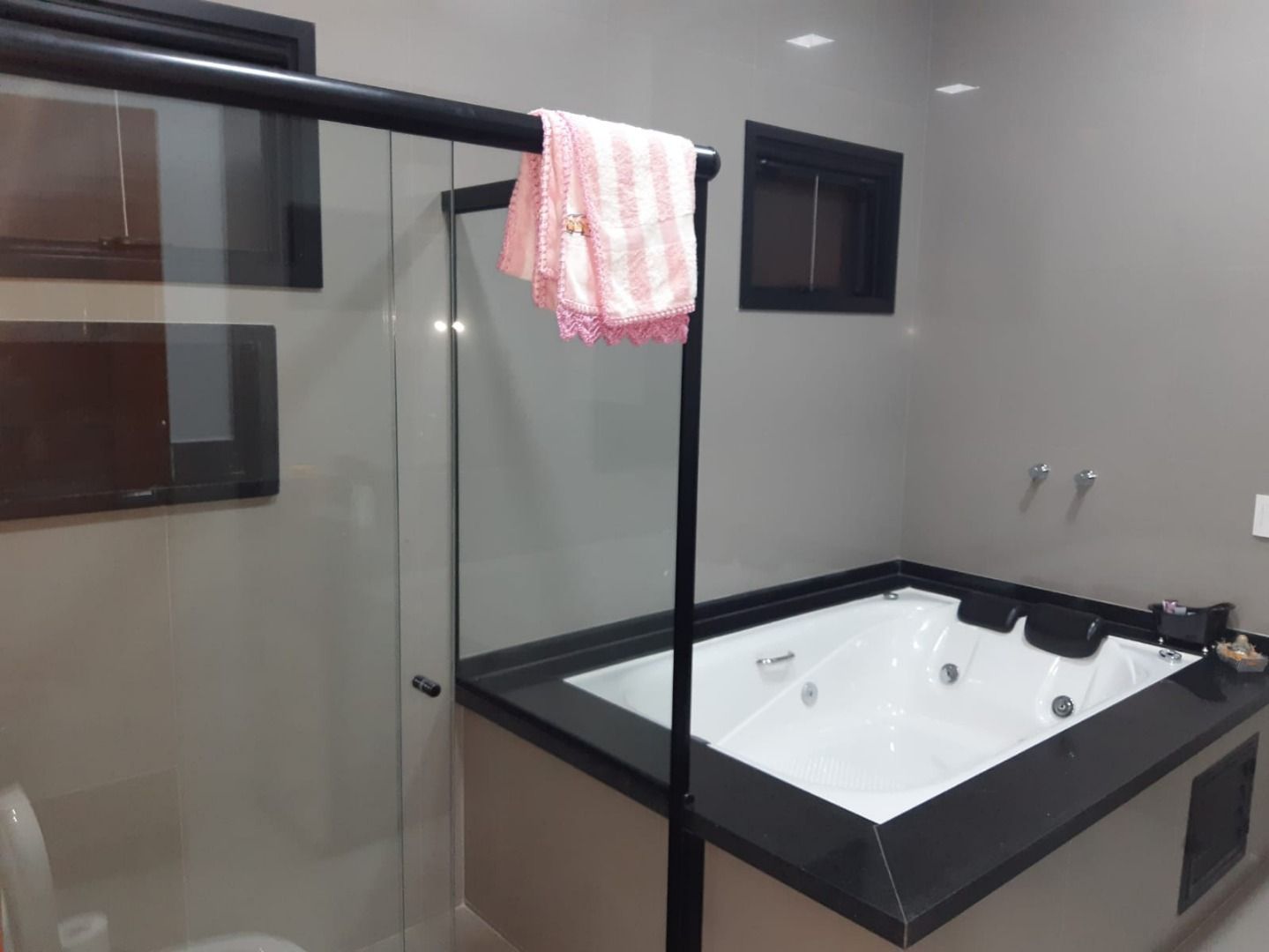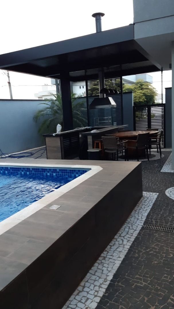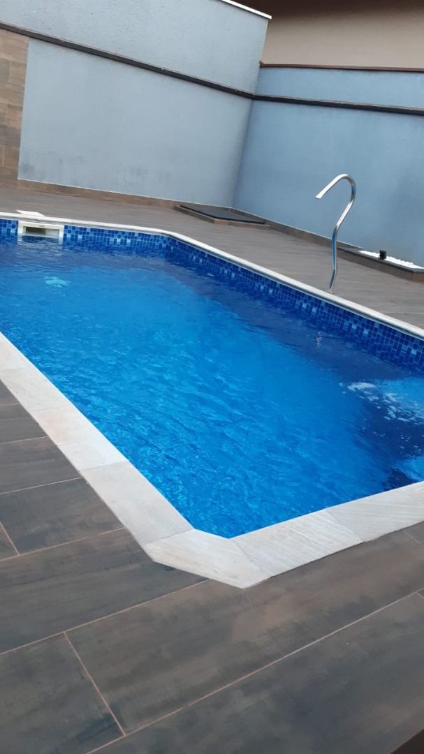 Belíssima casa com 325m² de construção, contendo 1 suíte de luxo com closet, 2 quartos com um banheiro tipo suite americana. Escritório, sacada grande. Parte térrea com 1 suíte, 2 salas, lavabo, cozinha planejada e área externa com área gourmet com churrasqueira e piscina.