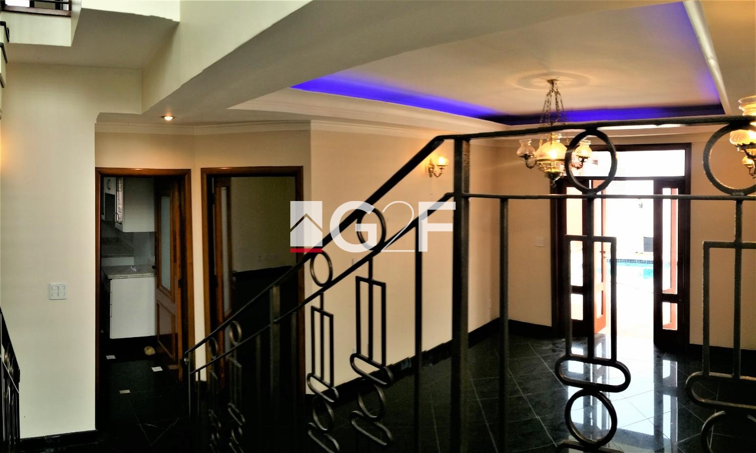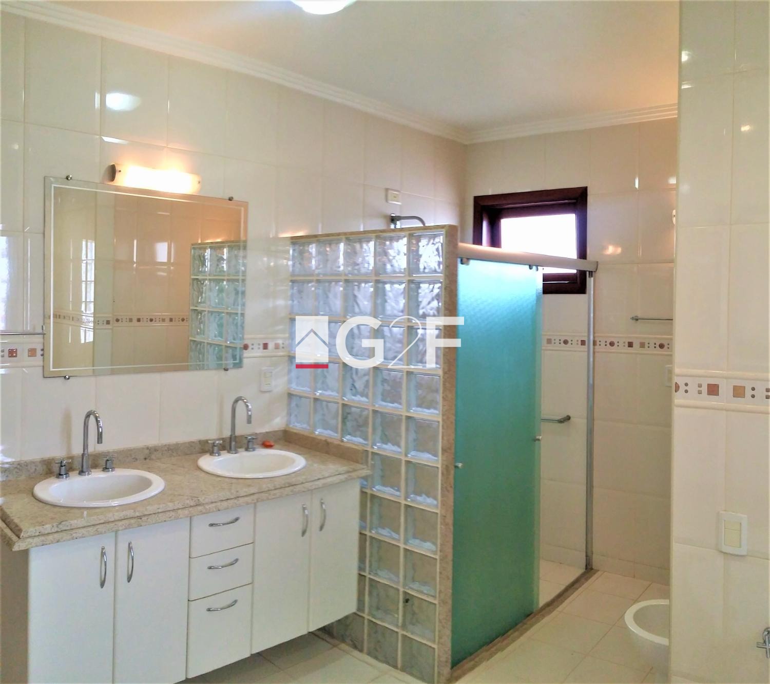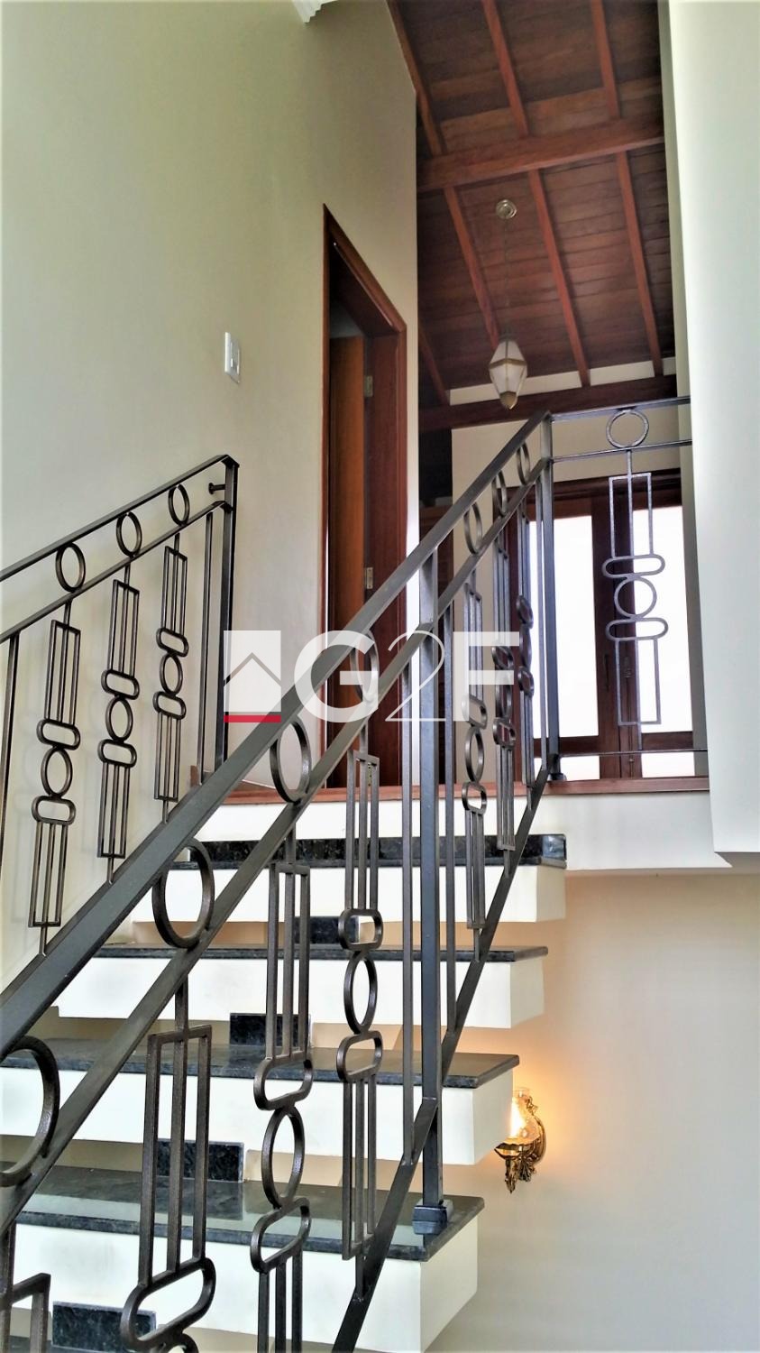 No piso superior temos uma sala íntima, 4 suítes, ricas em armários embutidos sendo 1 master com closet e banheira de hidro, todos dormitórios com sacada, 3 banheiros privativos com box blindex e gabinetes, piso superior em taco, casa com aquecimento solar e á gás, garagem para 4 carros.