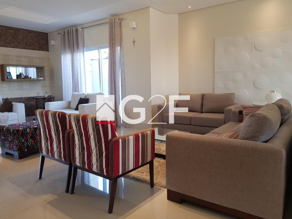 Casa moderna, agradável e muito aconchegante para receber família e amigos. Tudo foi planejado para deixar a vida mais prática e confortável. Entrada com hall social, sala para 3 ambientes, suíte térrea, lavabo, cozinha estilo americana com ilha, toda planejada, ampla despensa e área de serviço. Pavimento superior acessado por uma bela escada, toda em mármore, com 3 amplas suítes com closet (master com closet e sala de banho com hidro), terraço com linda vista para o lago. Charmosa área gourmet com churrasqueira, forno de pizza, piscina com prainha, deck, sauna e banheiro de apoio. Ambientes com projeto de iluminação, gesso, planejados e lindo paisagismo. Acabamento moderno, de muito bom gosto. Aquecimento solar com apoio elétrico. Cisterna com capacidade de 10.000lts de captação de água de chuva. Lazer no condomínio com quadra de tenis, playground, salão de festa, churrasqueira, academia, quadra esportiva e de areia. Portaria e segurança 24 horas.
