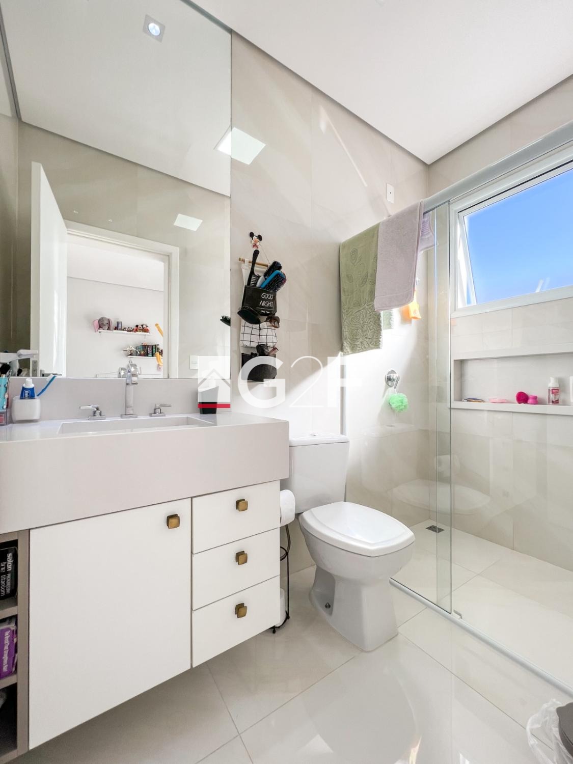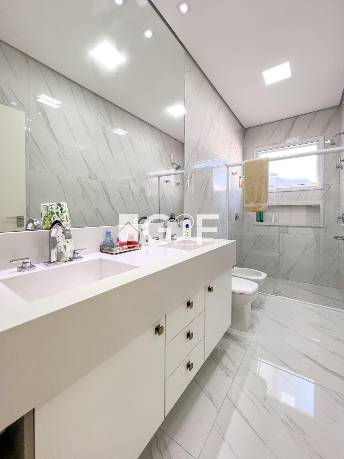 Adentrando esta casa espetacular, você será recebido por quatro suítes impecáveis, cada uma equipada com ar condicionado, armários planejados e banheiros elegantes. A suíte master é um santuário de tranquilidade, com um closet generoso e um banheiro espaçoso com cuba dupla esculpida, representando o apogeu do luxo.