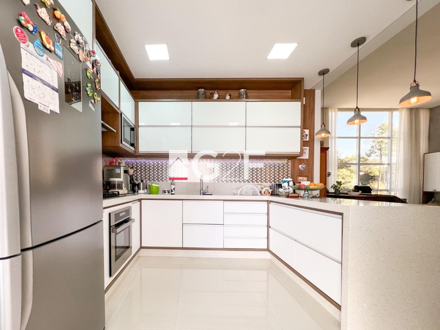 A sala de estar e jantar é um espaço grandioso, com pé direito alto e iluminação em LED, criando uma atmosfera de elegância e serenidade. O escritório, com vista para um charmoso jardim de inverno, é um local inspirador para trabalhar ou estudar. A cozinha estilo americana, adornada com mármore branco estelar importado, é um chef-d'oeuvre de design, equipada com armários planejados, coifa, cooktop, forno elétrico e micro-ondas novos da Panasonic. Uma mesa para refeições adiciona um toque de convivialidade.