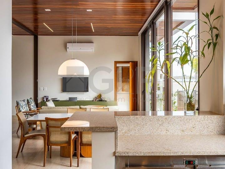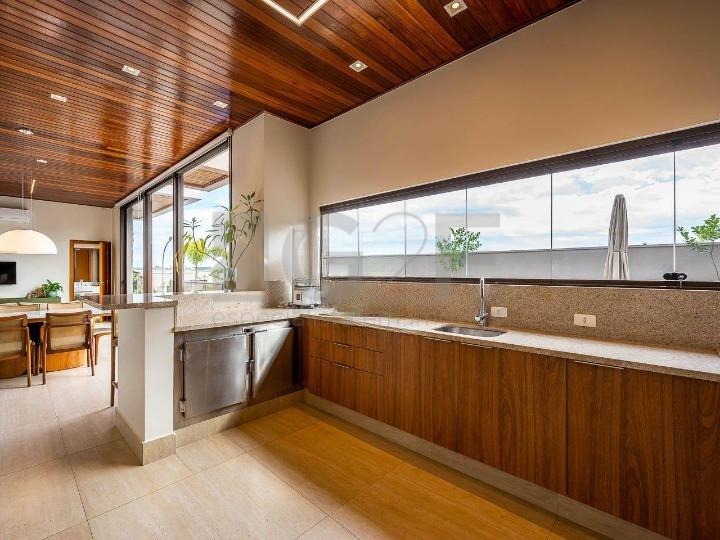 O espaço gourmet, estrategicamente integrado à sala, é um convite à celebração. Equipado com churrasqueira e cooktop, é o local ideal para confraternizações memoráveis. A vista para a piscina, além de refrescante, adiciona um toque de serenidade ao ambiente, criando um espaço perfeito para relaxar e desfrutar dos momentos especiais da vida.