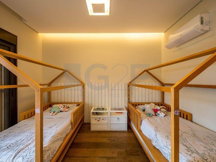 Os detalhes não param por aí. As quatro suítes garantem privacidade e conforto, sendo a suíte master um verdadeiro refúgio com closet e pia dupla. O toque de modernidade é evidente com a presença de ar condicionado, proporcionando o clima ideal em qualquer estação do ano.