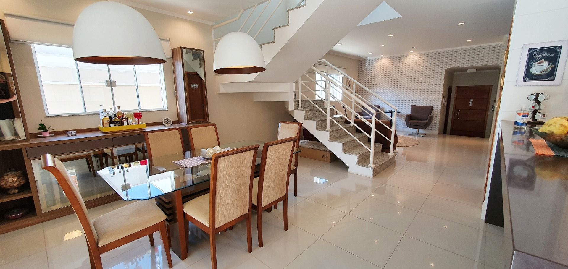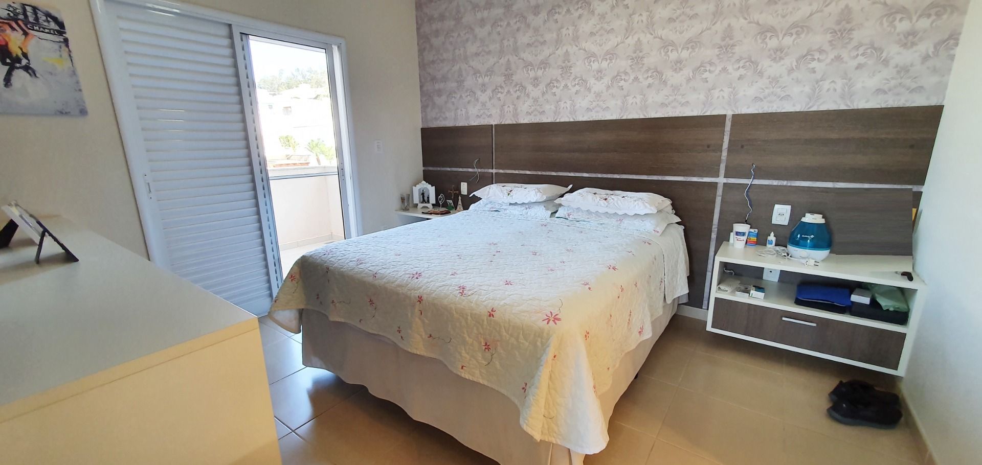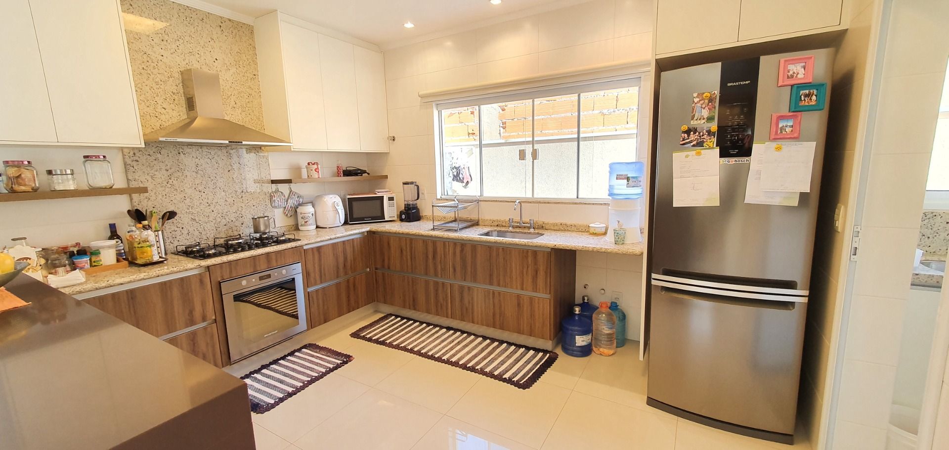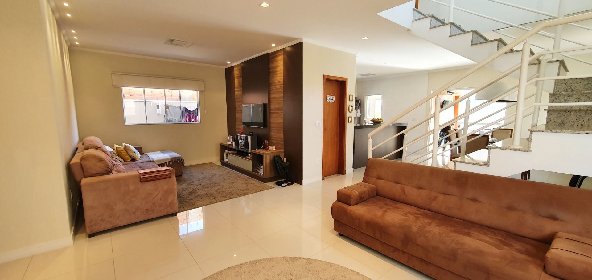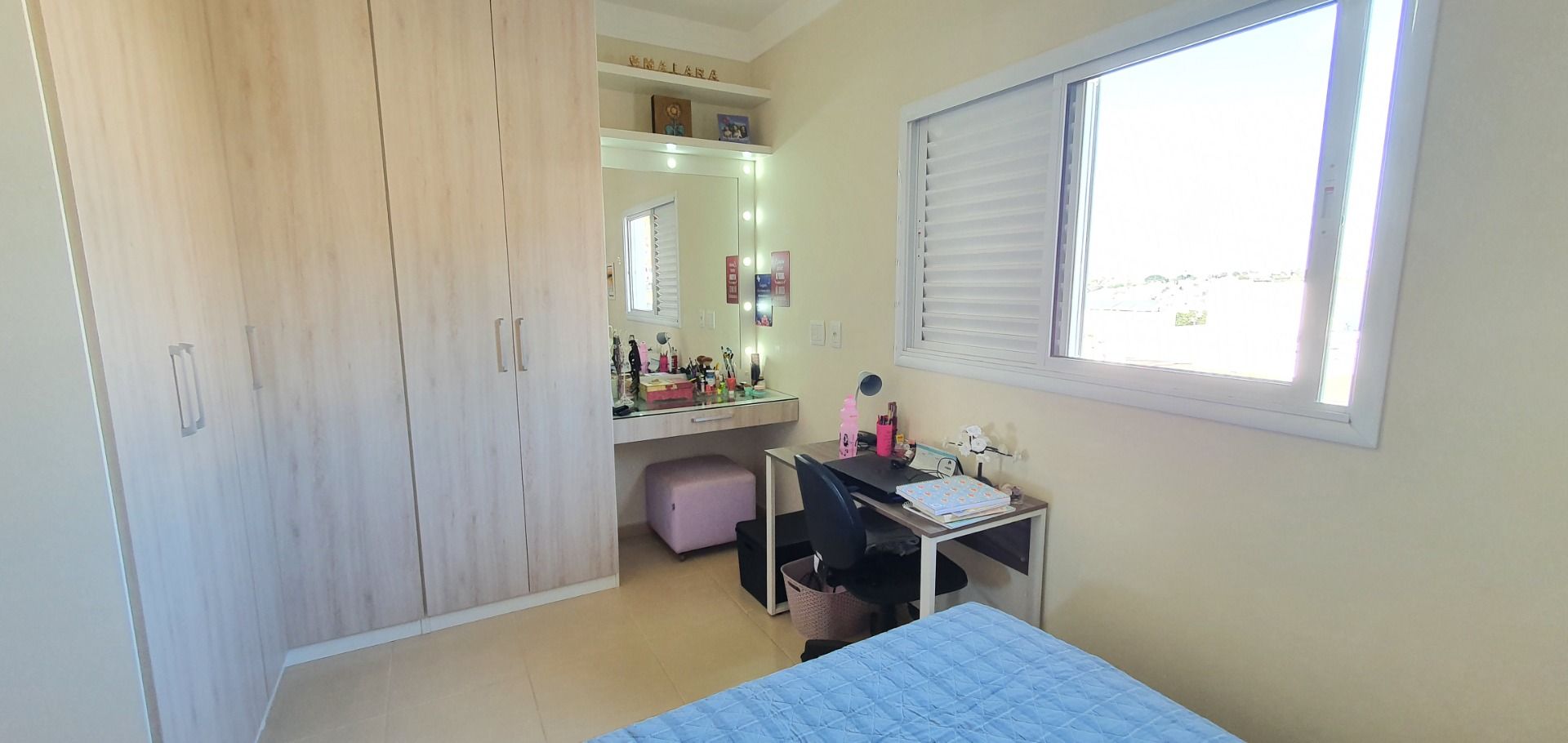 Sobrado com acabamento impecável, amplo living para 3 ambientes, piso em porcelanato, lavabo, cozinha americana planejada, 3 suítes com armários planejados. Varanda gourmet com churrasqueira, piscina e amplo quintal. Garagem com 2 vagas cobertas veículos. Condomínio com ótima estrutura de lazer: piscina, quadra poliesportiva, salão de festas e churrasqueira.
