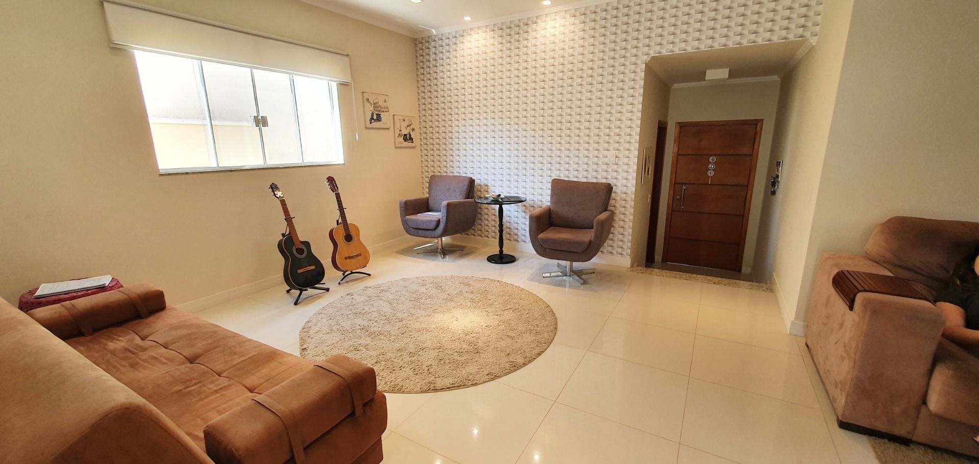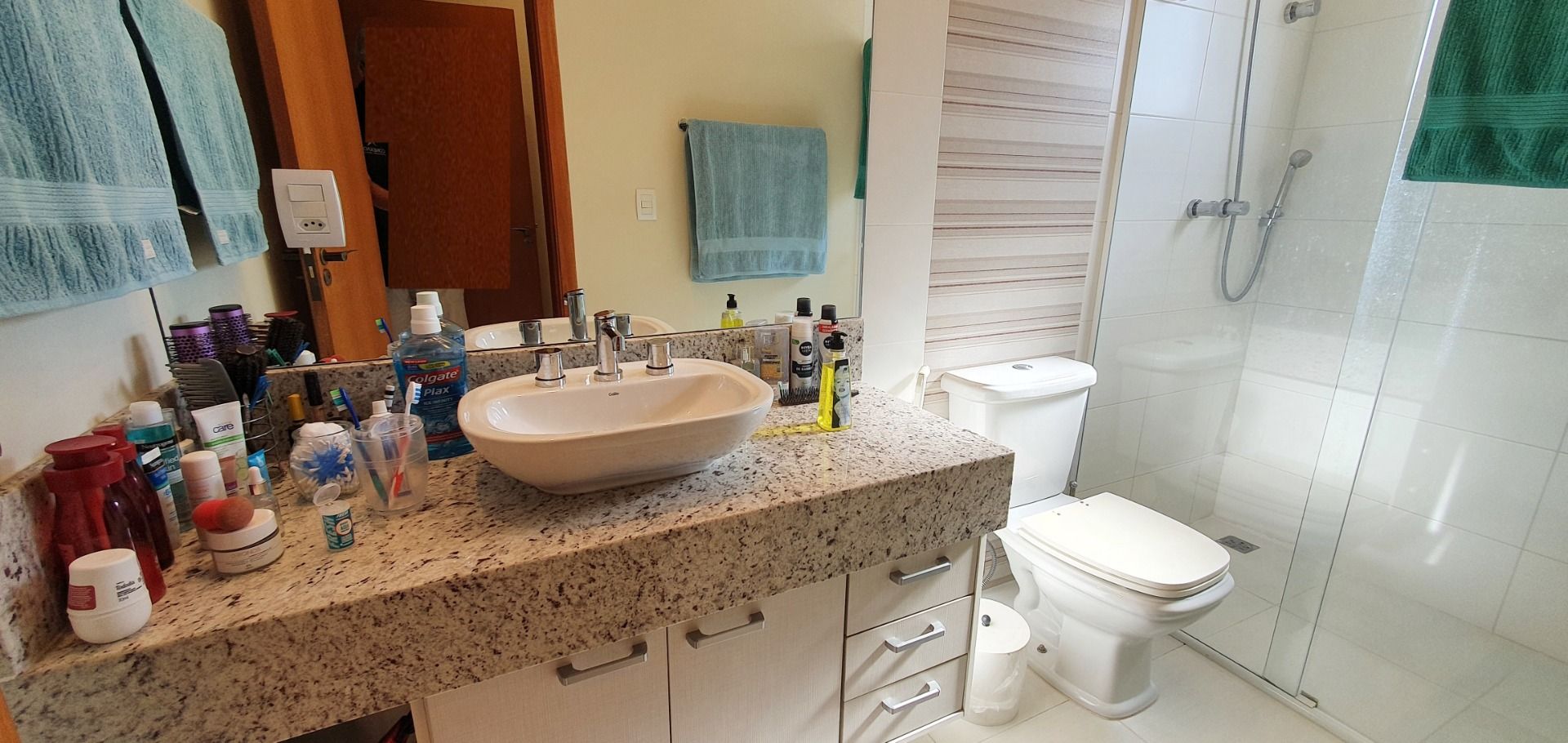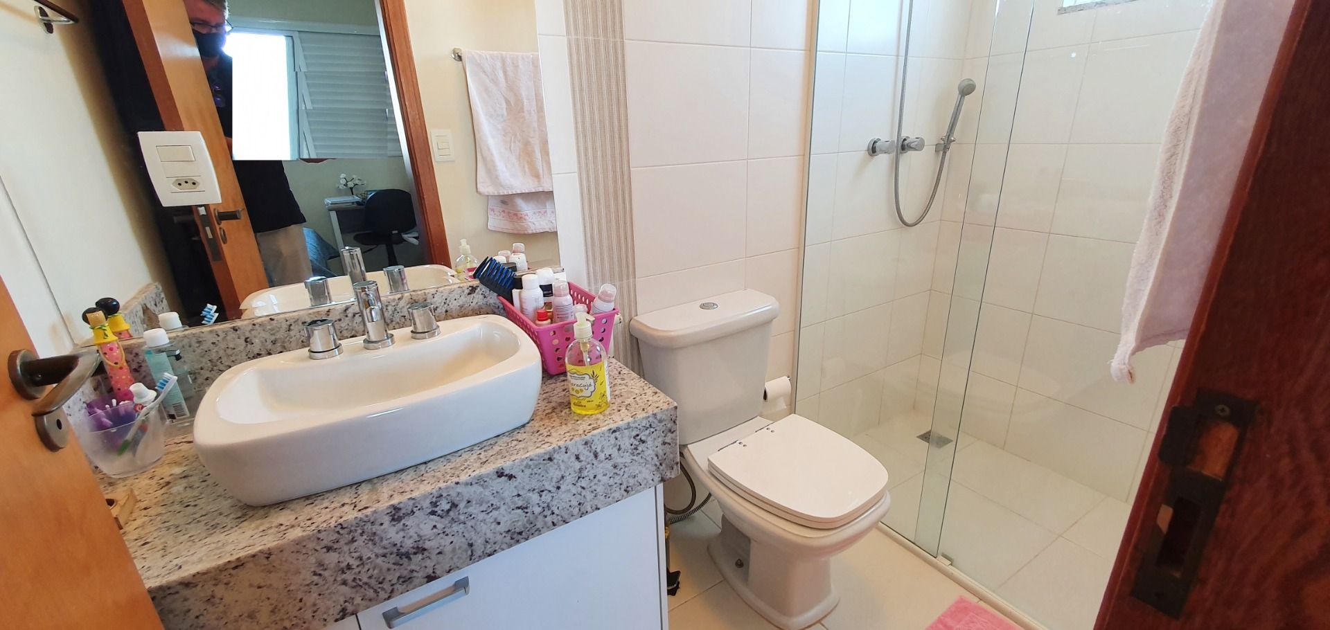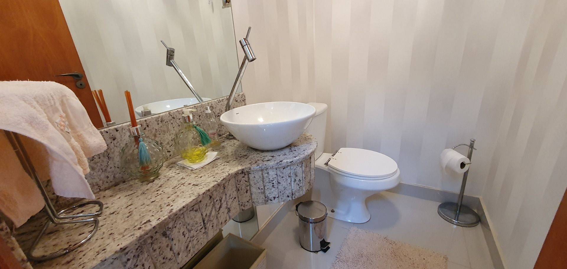 Sobrado com acabamento impecável, amplo living para 3 ambientes, piso em porcelanato, lavabo, cozinha americana planejada, 3 suítes com armários planejados. Varanda gourmet com churrasqueira, piscina e amplo quintal. Garagem com 2 vagas cobertas veículos. Condomínio com ótima estrutura de lazer: piscina, quadra poliesportiva, salão de festas e churrasqueira.
