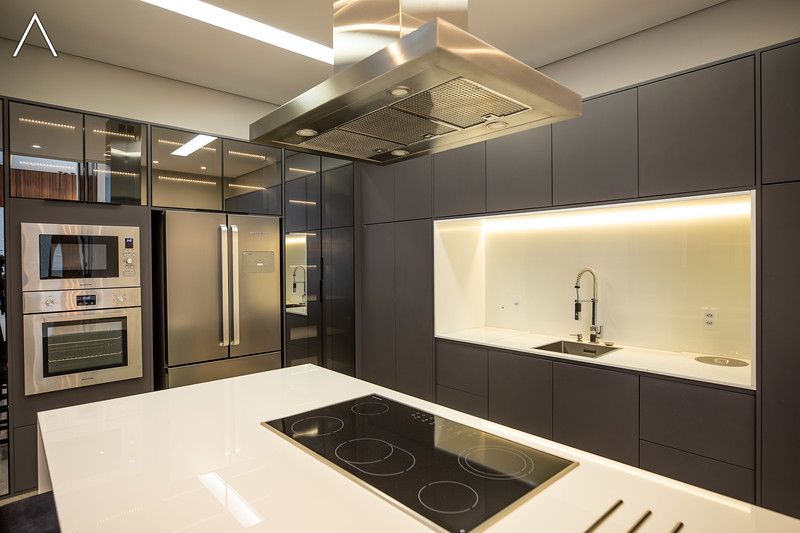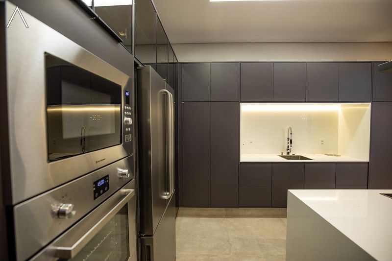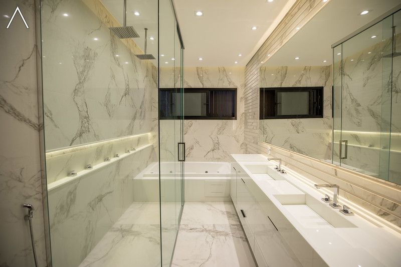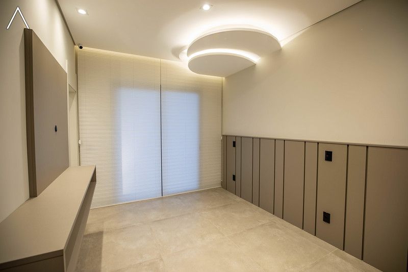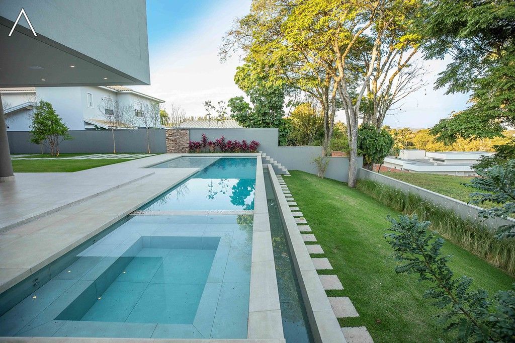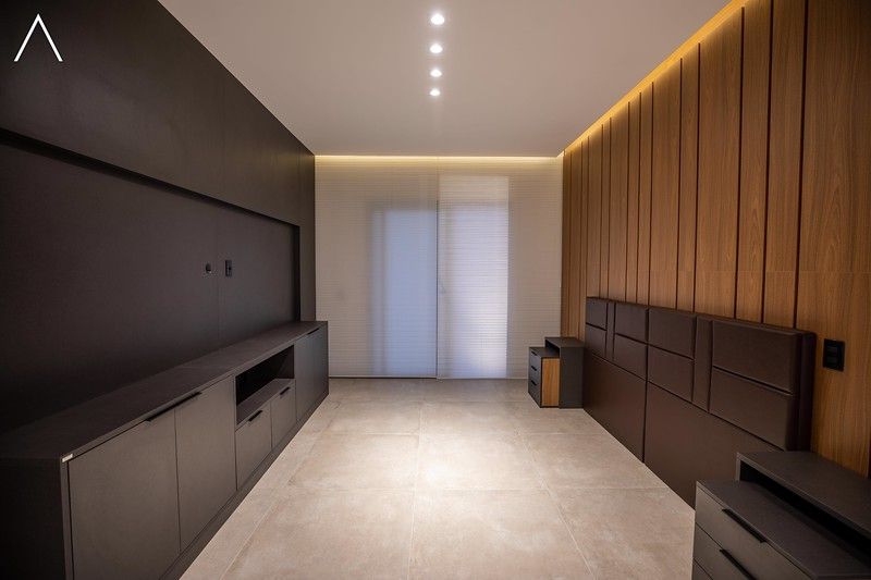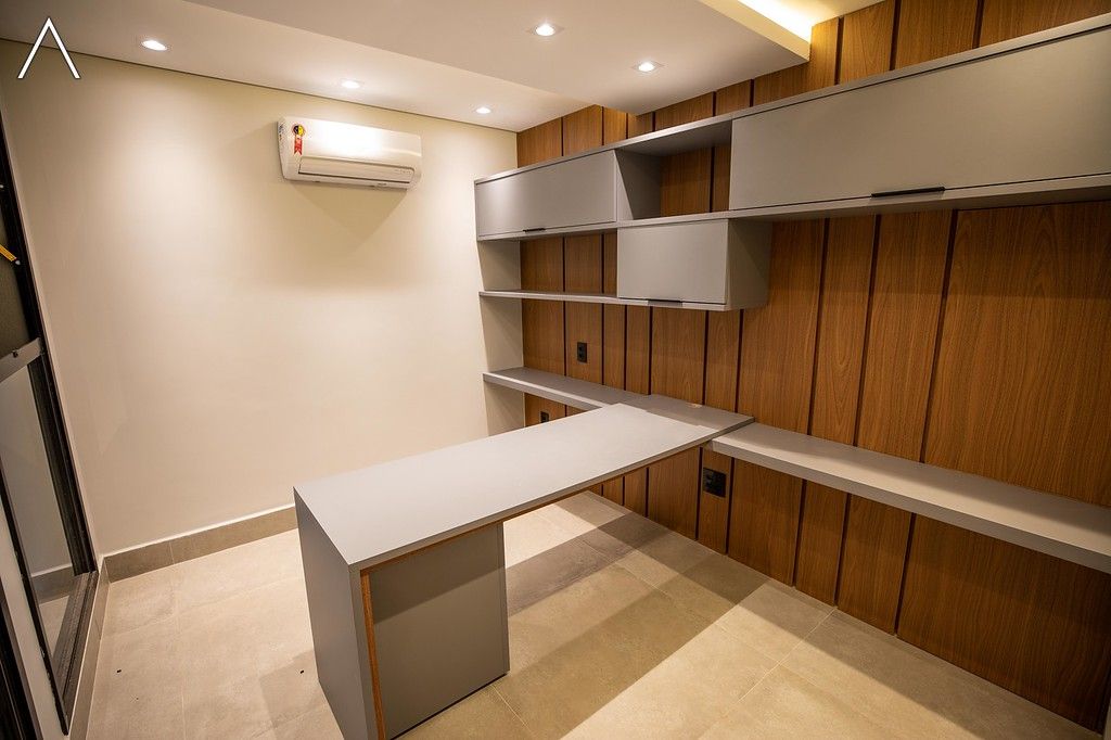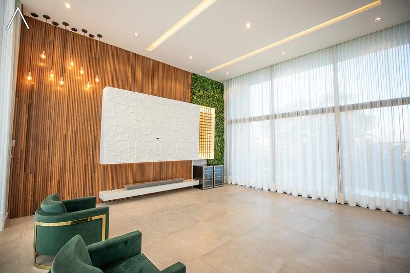 No piso inferior, que pode ser acessado pelo elevador, estão a ampla área gourmet com piscina, spa, sauna úmida, lavabo, home theater e home office.