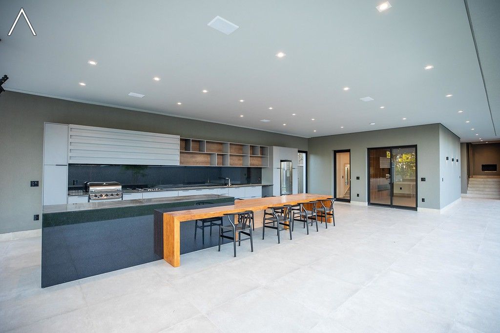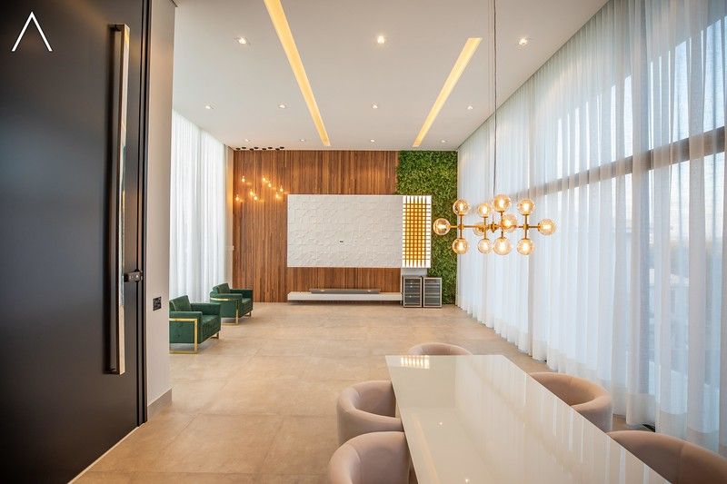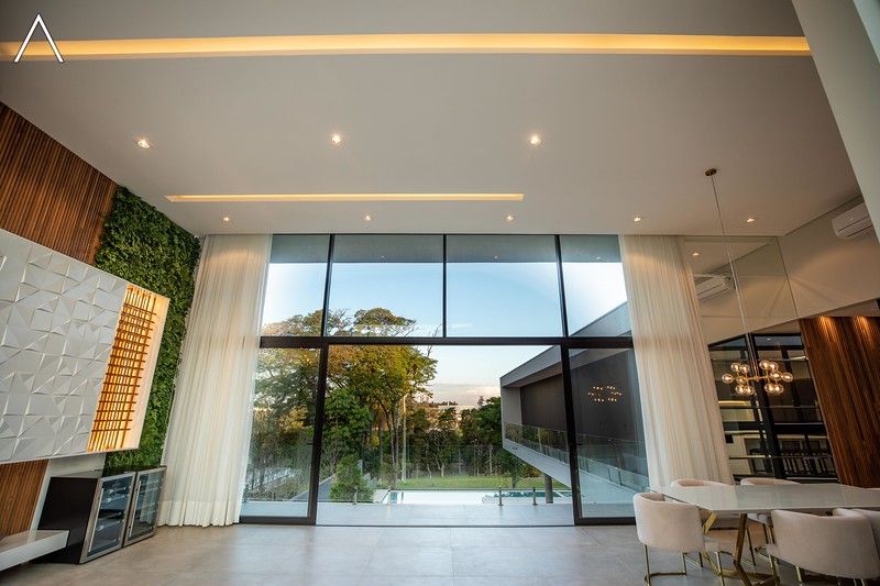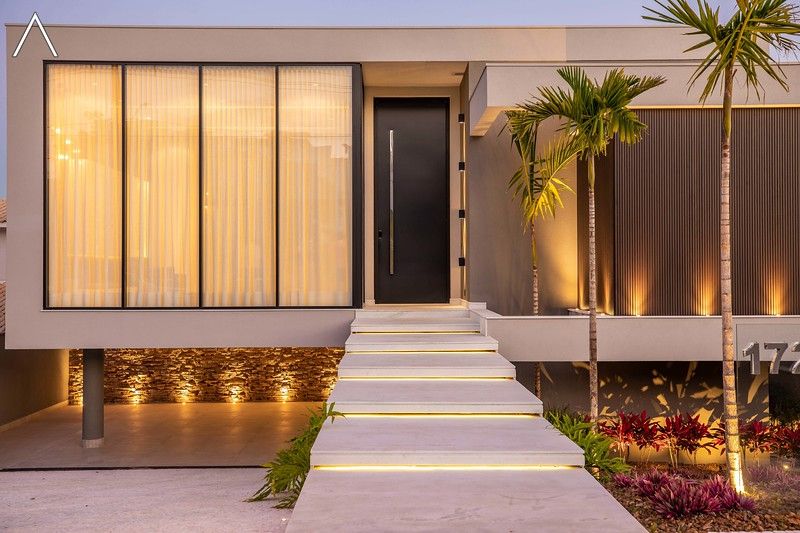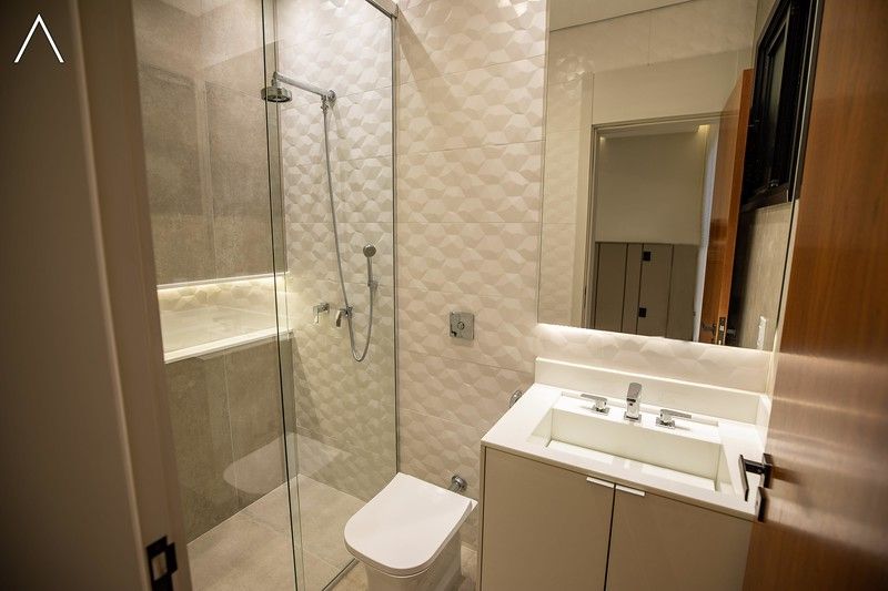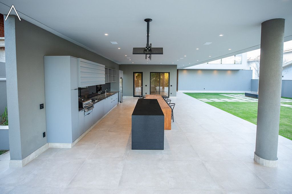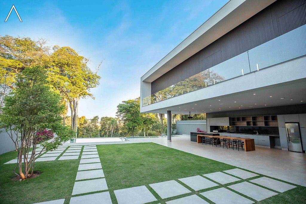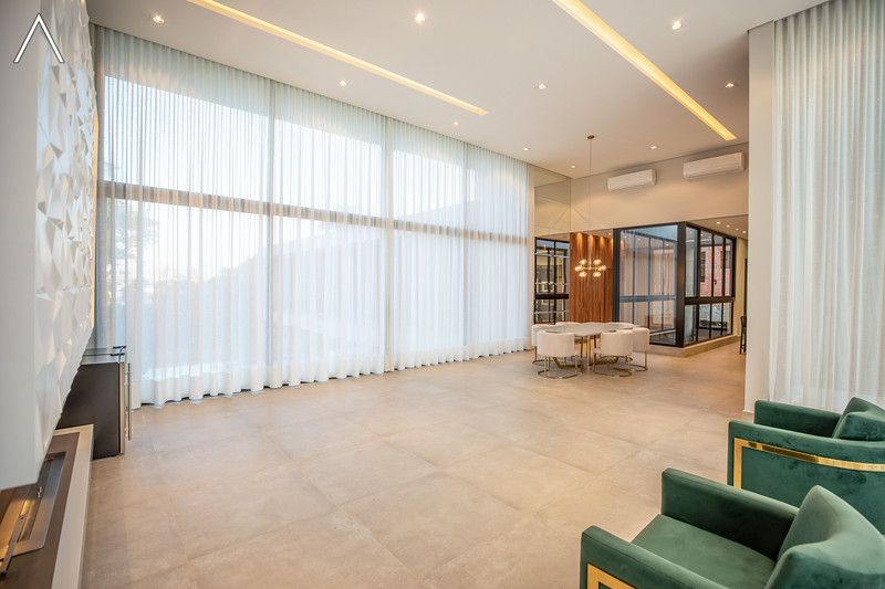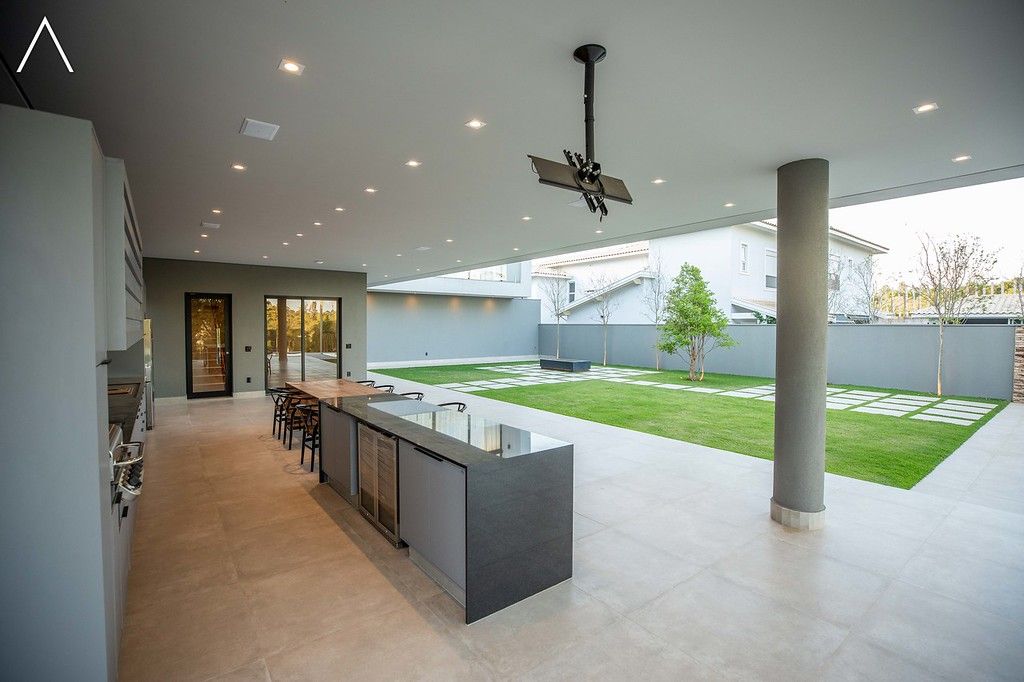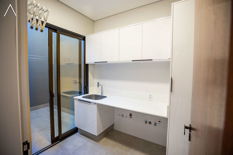 No piso térreo estão as salas de estar, jantar, cozinha planejada, lavabo, lavanderia padrão e as 4 suítes.