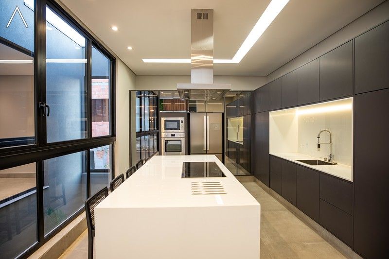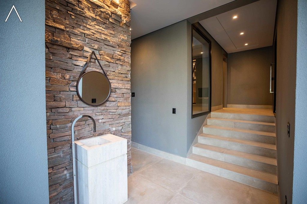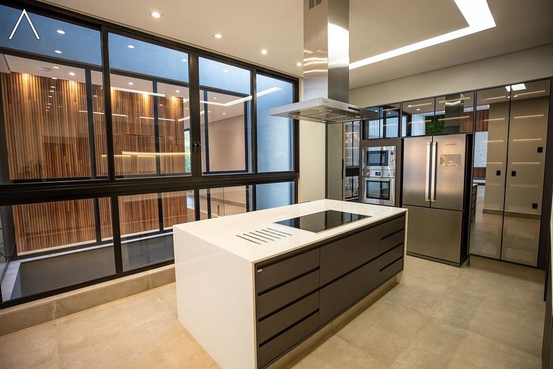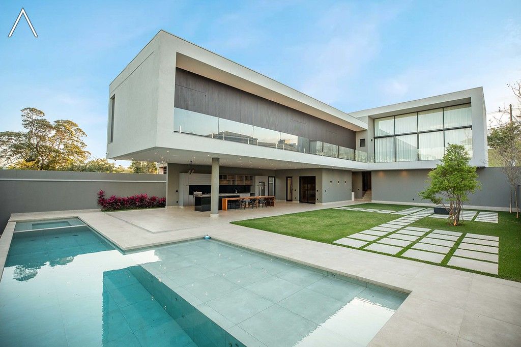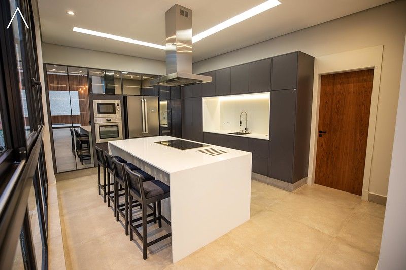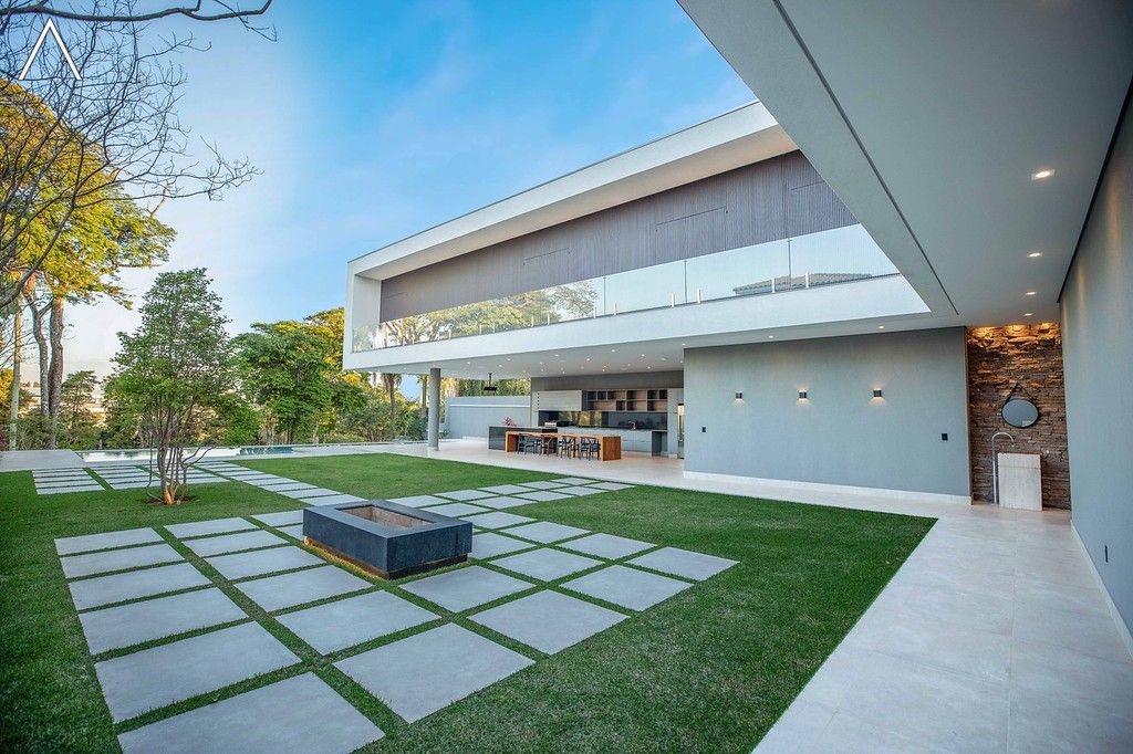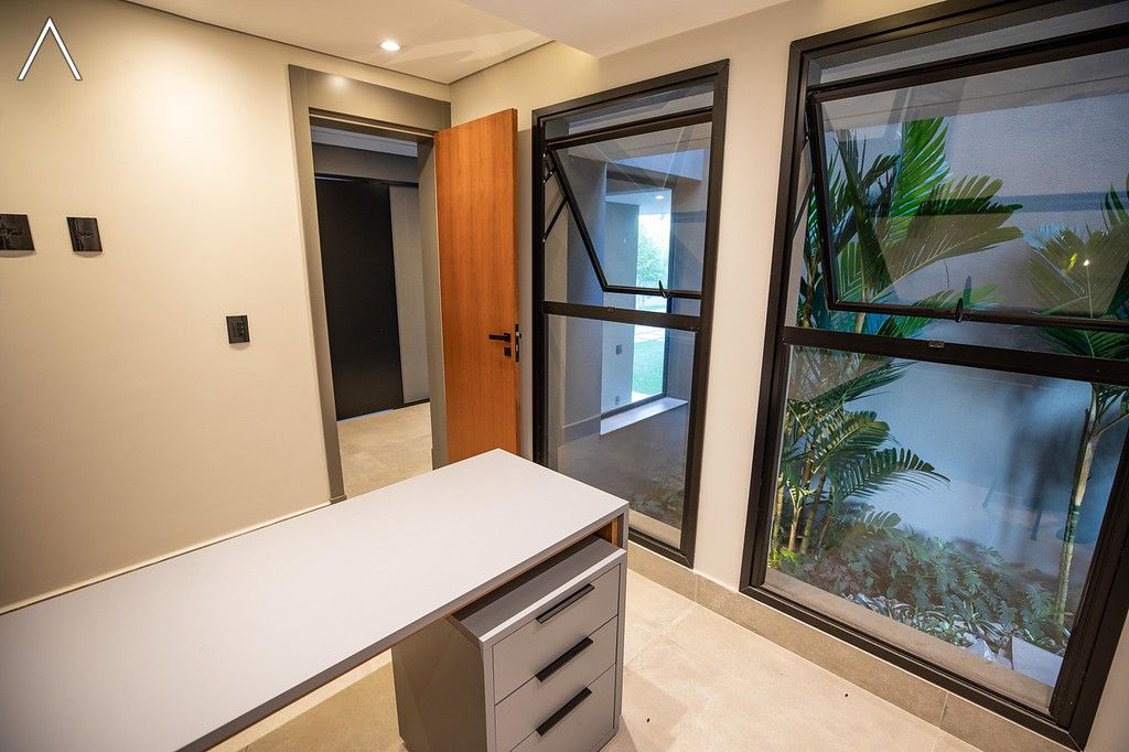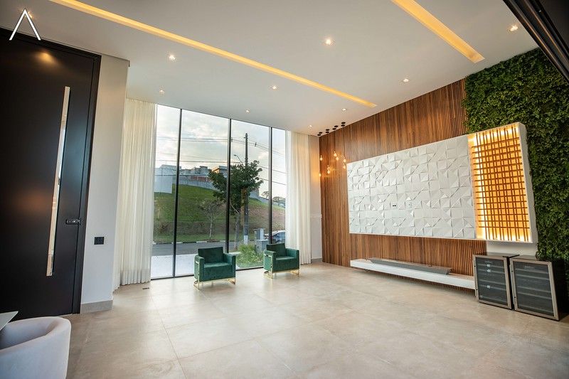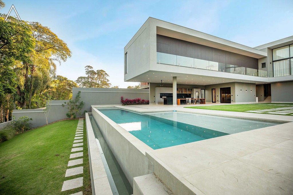 No piso térreo estão as salas de estar, jantar, cozinha planejada, lavabo, lavanderia padrão e as 4 suítes.