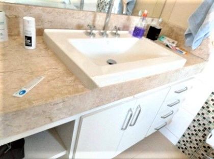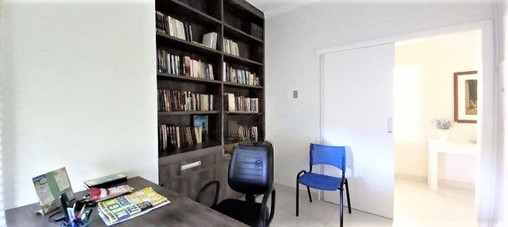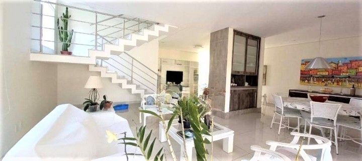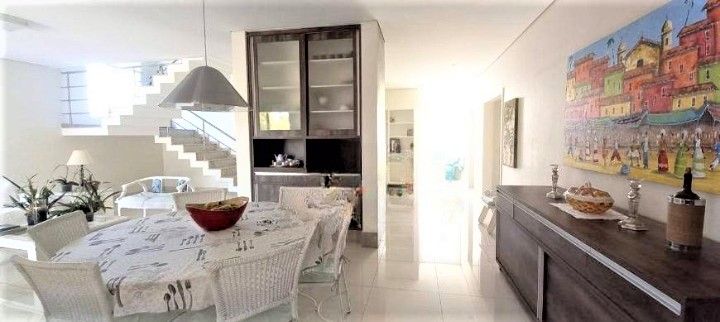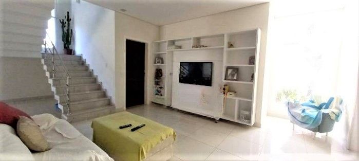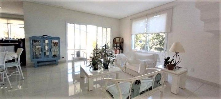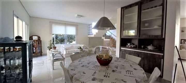 Com muita luz natural, possui 3 suítes, sendo 1 no piso térreo, sala para 3 ambientes, sendo sala de tv, sala de estar e sala de jantar, escritório (reversível), lavabo, cozinha planejada com copa e armários, com ar condicionado e banheiros com Box, 5 banheiros. Área externa com churrasqueira, varanda, lindo jardim nos corredores laterais e cercada pelo pomar exuberante. Garagem com 04 vagas para veículos. O condomínio possui segurança 24 horas e sistema de monitoramento facial para a entrada. Área de lazer com duas quadras de tênis, sendo uma de saibro, playground, campo de futebol gramado, quadra poliesportiva e um bosque para caminhada.