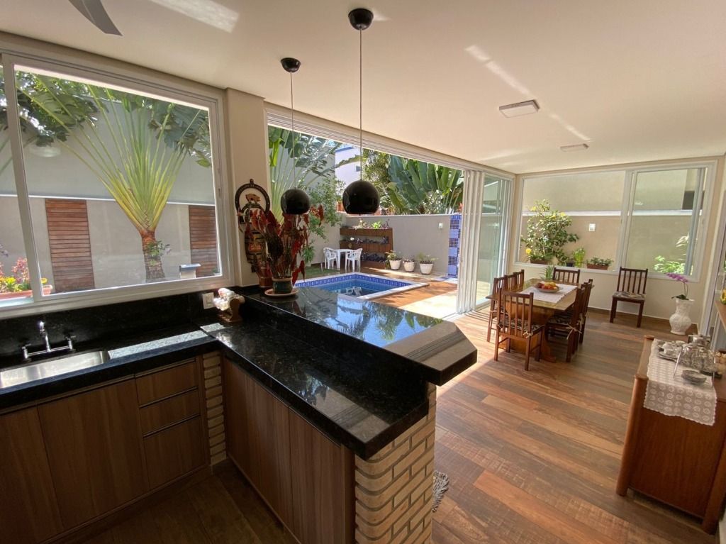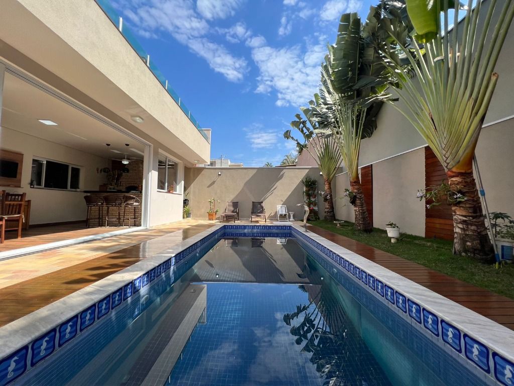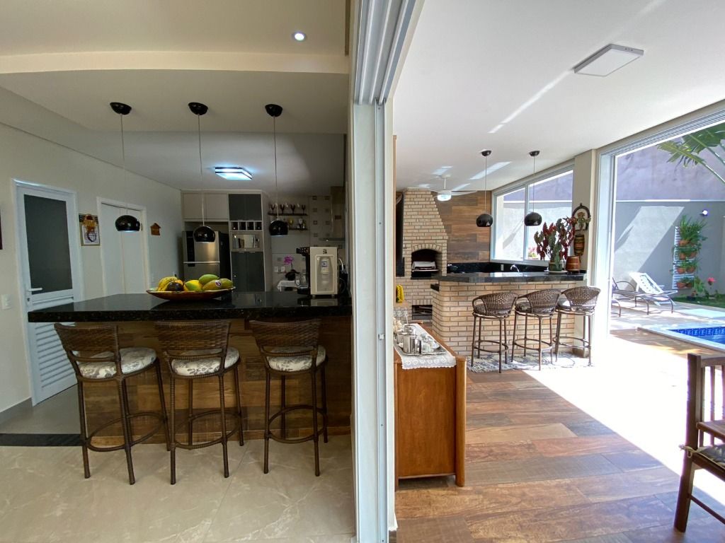 A casa é beneficiada por uma excelente iluminação natural, criando um ambiente agradável e convidativo em todos os cômodos. A área gourmet, ampla e equipada com churrasqueira, é ideal para receber amigos e familiares, enquanto a piscina completa o cenário perfeito para momentos de lazer e relaxamento.