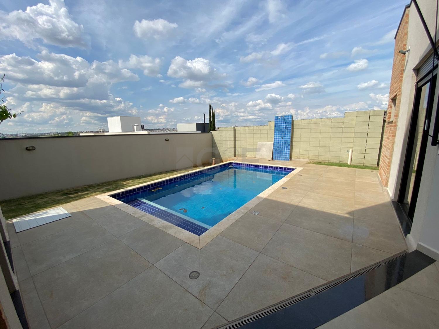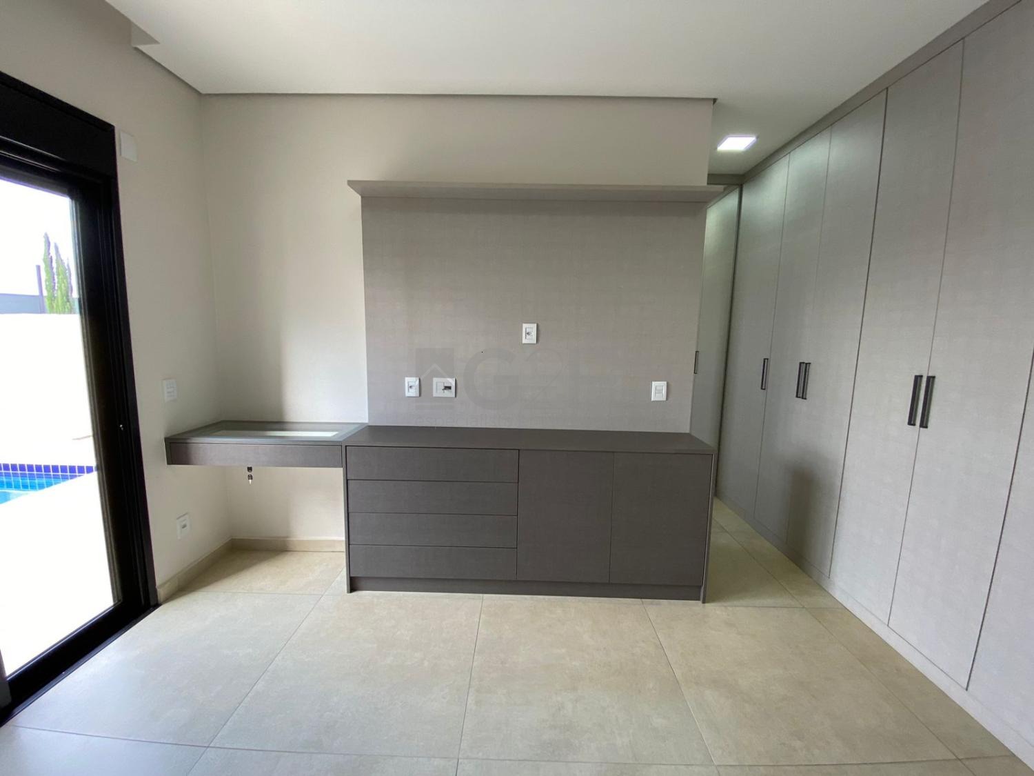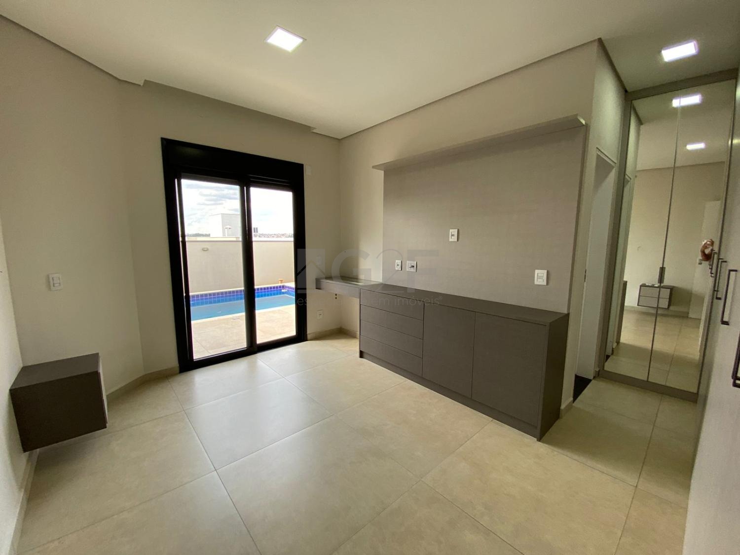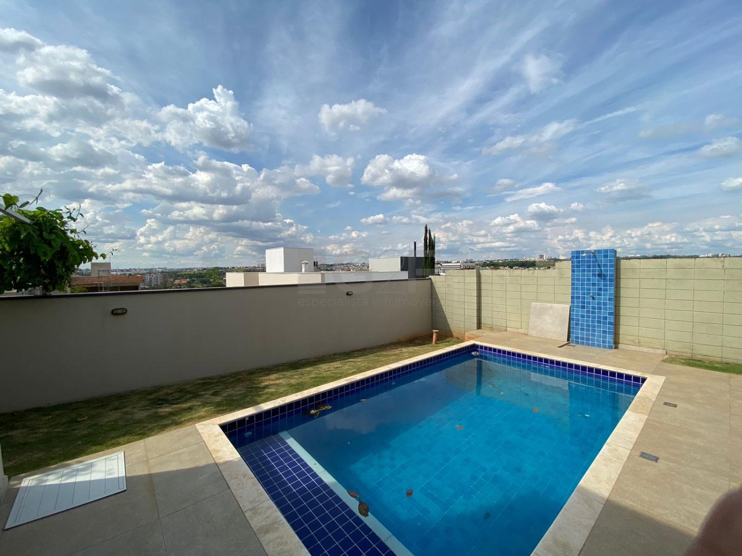 Pé direito duplo na sala, aquecimento solar na casa e piscina - energia por FOTOVOLTAICA, persianas elétricas e telas mosqueteiras nas esquadrias.