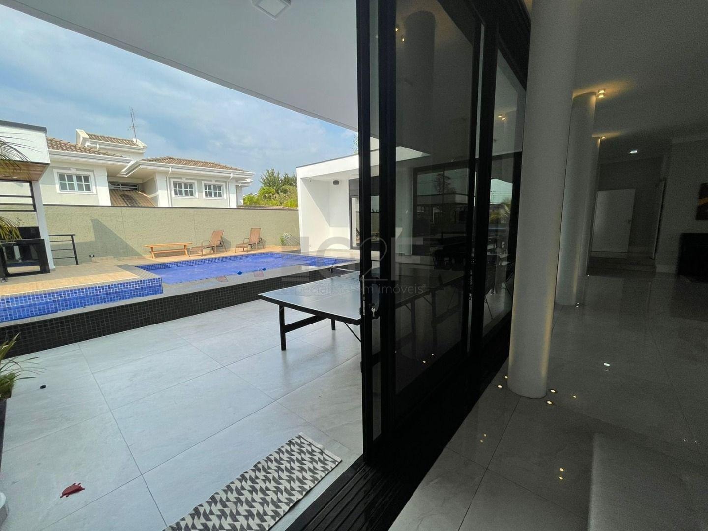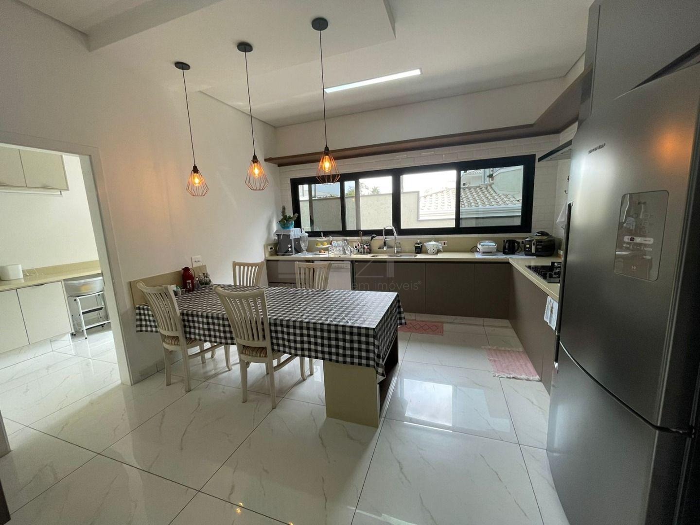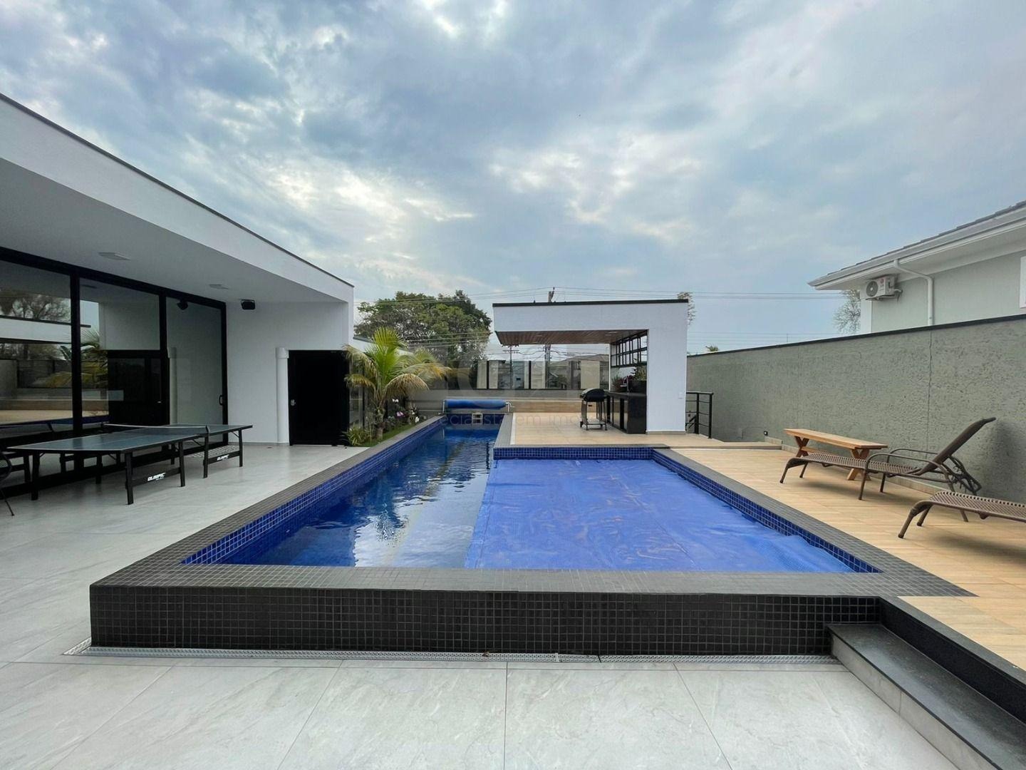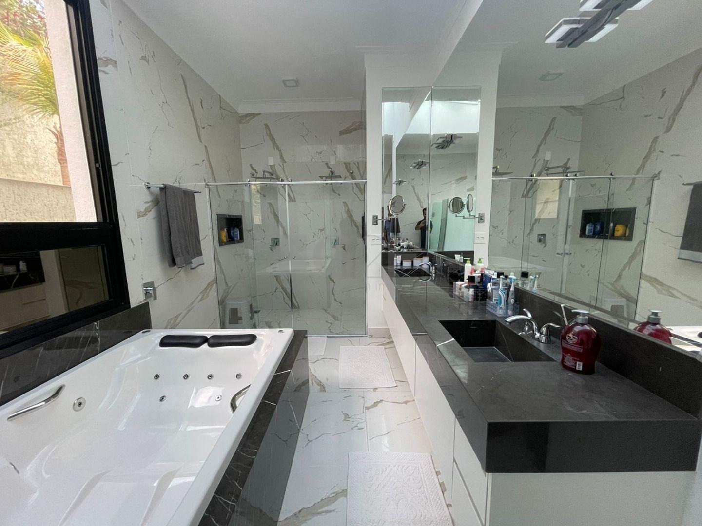 Casa Térrea com fino acabamento e sofisticação construída com ambientes amplos, bem iluminados e arejados, totalmente clean. 4 suítes com pé direito de 3,3 m ricas em armários sendo 1 master com closet e hidro. Área social integrada, living com pé direito de 3,70 m, cozinha estilo americana totalmente planejada e espaço gourmet, escritório. Ar condicionado em todos ambientes. Sauna, piscina aquecida com cascata.42 m² placas solares para aquecimento da piscina.3 placas solares para duchas do banho. Reservatório de 10.000Lt de água de chuva.20 placas de energia fotovoltaica. Automação de lâmpadas, ar condicionados, TV, Home Theater e persianas, bombas das duchas piscina e da cascata. Paisagismo completo. Armários planejados: ROMANZZA.