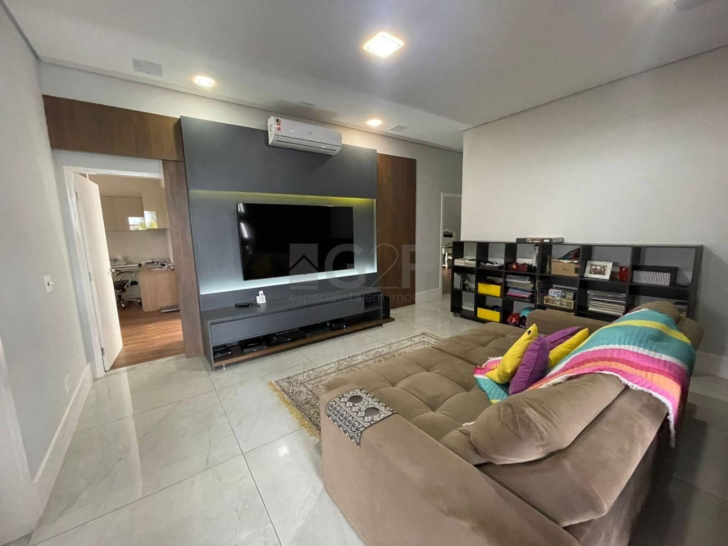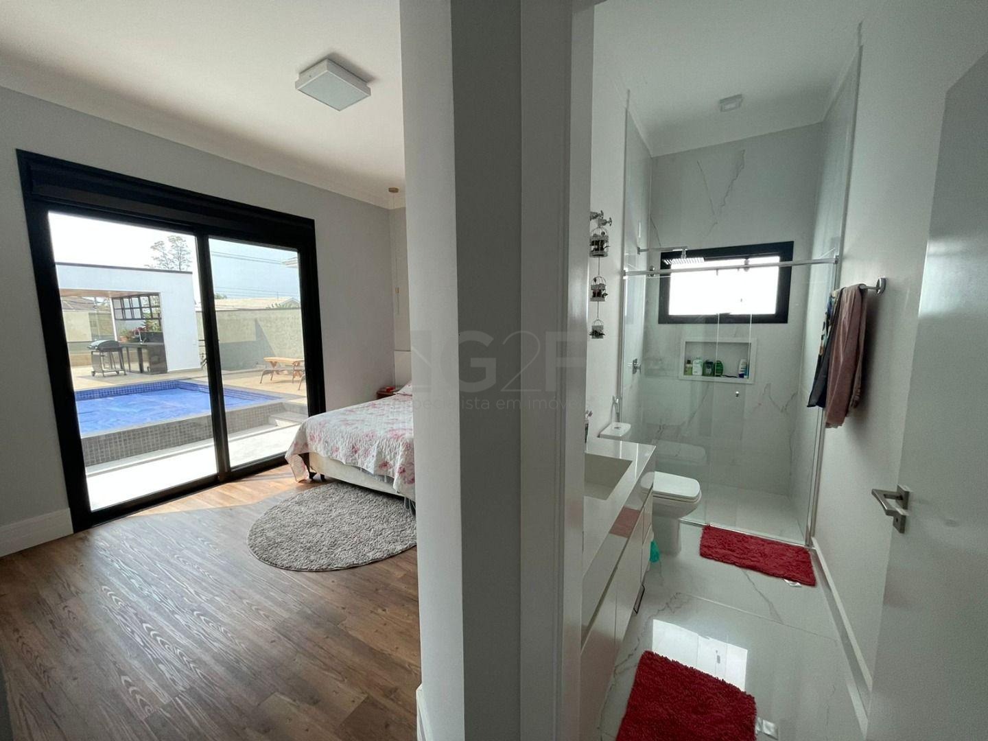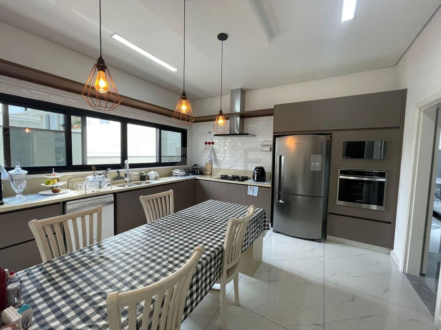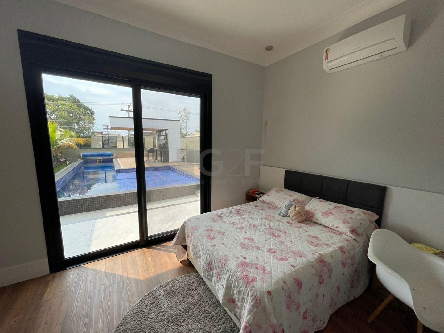 Casa Térrea com fino acabamento e sofisticação construída com ambientes amplos, bem iluminados e arejados, totalmente clean. 4 suítes com pé direito de 3,3 m ricas em armários sendo 1 master com closet e hidro. Área social integrada, living com pé direito de 3,70 m, cozinha estilo americana totalmente planejada e espaço gourmet, escritório. Ar condicionado em todos ambientes. Sauna, piscina aquecida com cascata.42 m² placas solares para aquecimento da piscina.3 placas solares para duchas do banho. Reservatório de 10.000Lt de água de chuva.20 placas de energia fotovoltaica. Automação de lâmpadas, ar condicionados, TV, Home Theater e persianas, bombas das duchas piscina e da cascata. Paisagismo completo. Armários planejados: ROMANZZA.