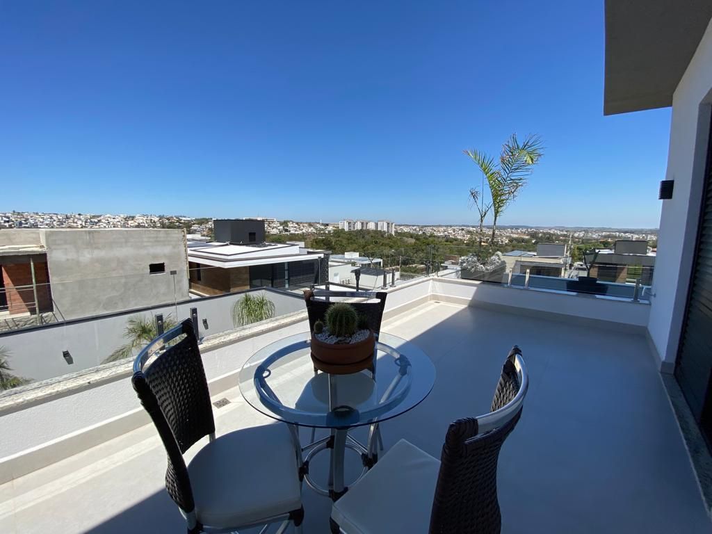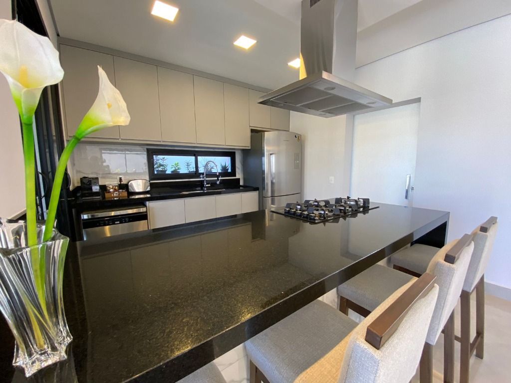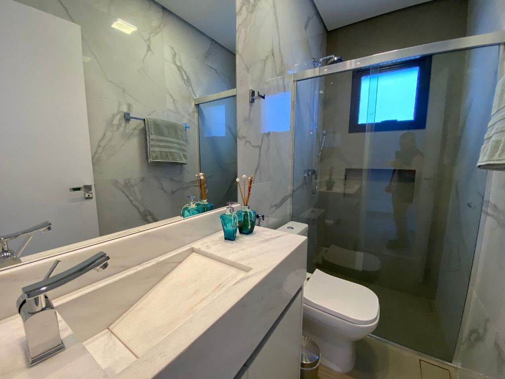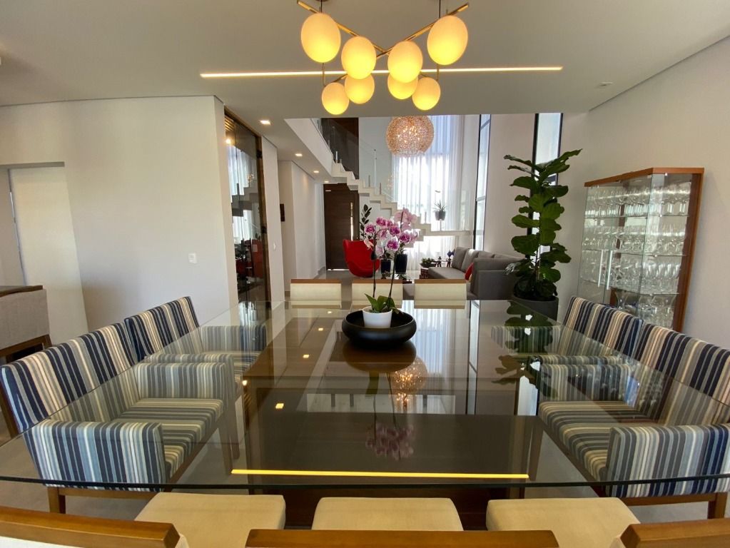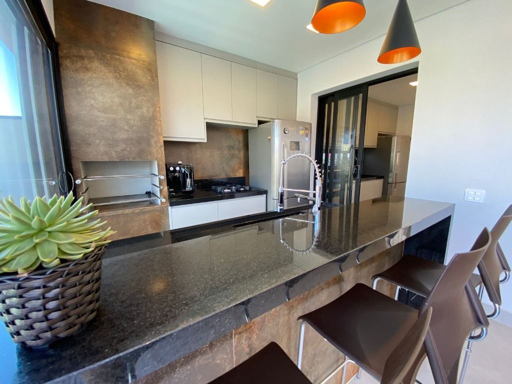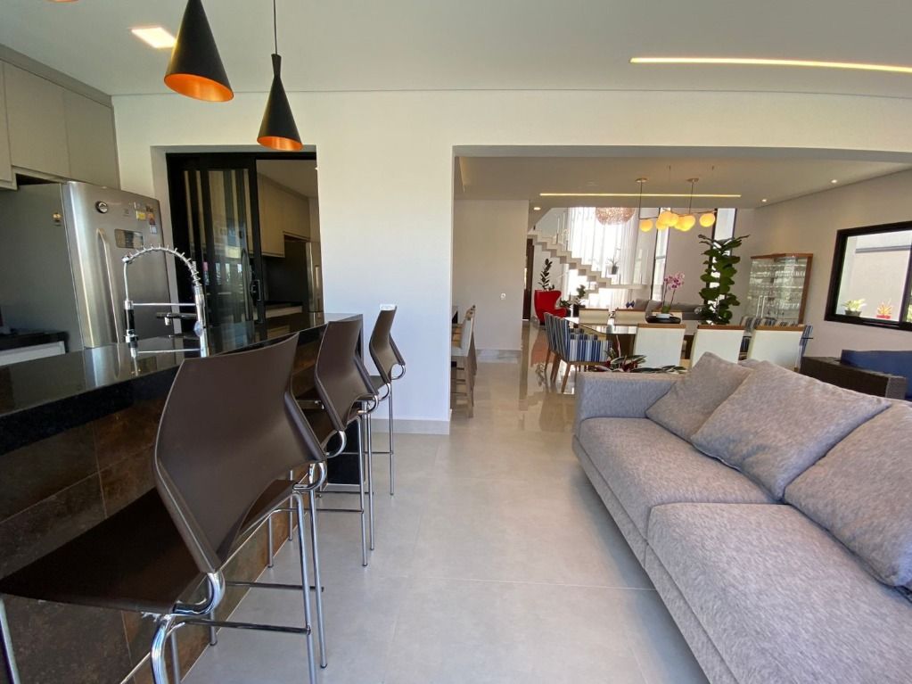 3 quartos, todos suítes no pavimento superior, com ar condicionado e 1 suíte reversível no térreo, também com ar condicionado. A casa possui energia foto voltaica, adega para 350 garrafas, sala para 3 ambientes, cozinha e espaço gourmet integrados, adega, uma linda piscina aquecida e um quintal com ótima privacidade!. Porcelanatos Eliane e Porto Belo e escada em Mármore Carrara, além de uma vista permanente incrível. Armários planejados de qualidade em toda a casa. Não perca de visitar essa oportunidade!