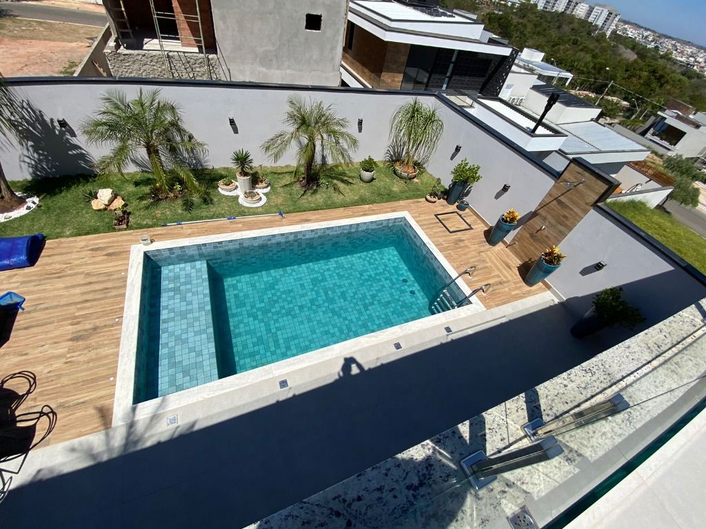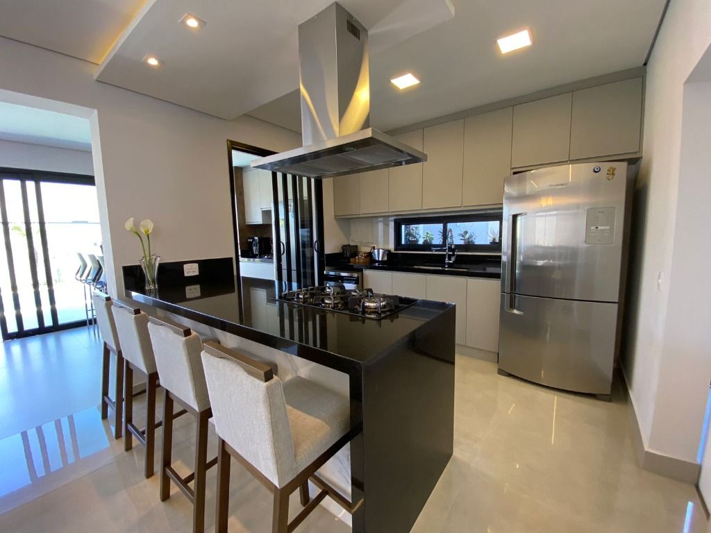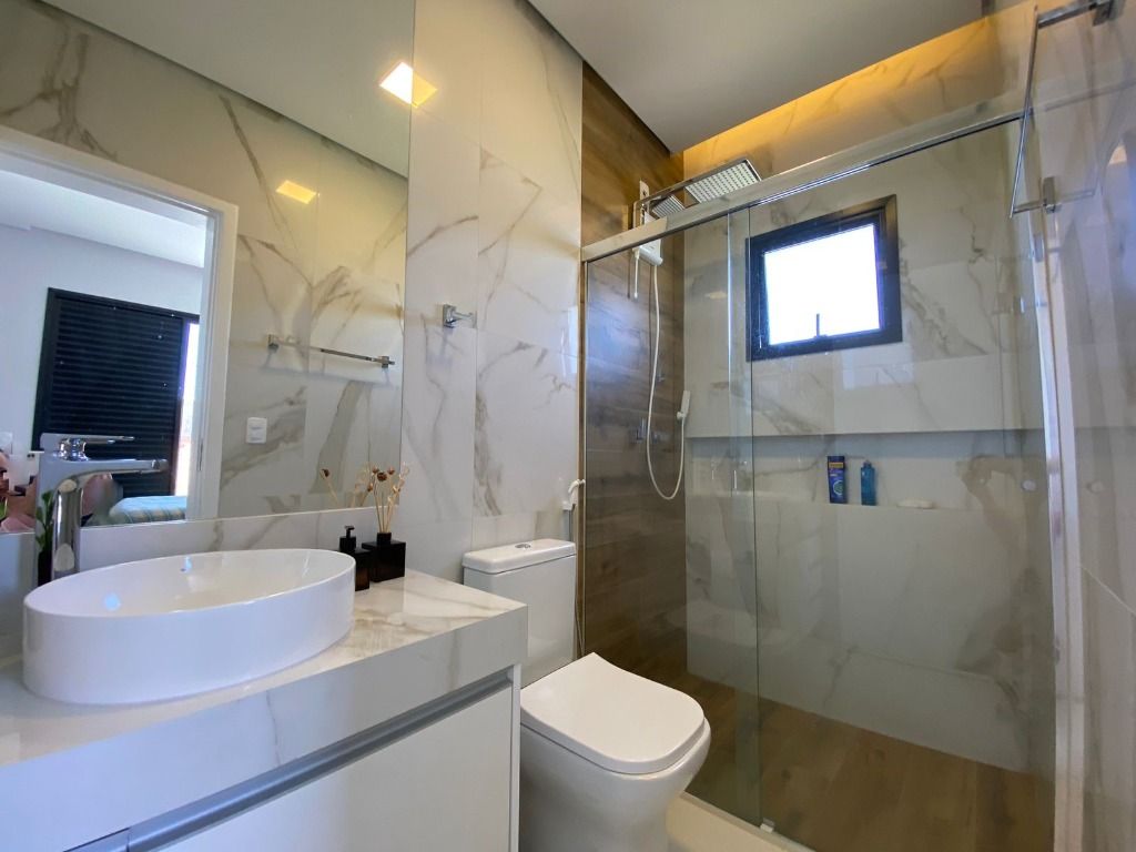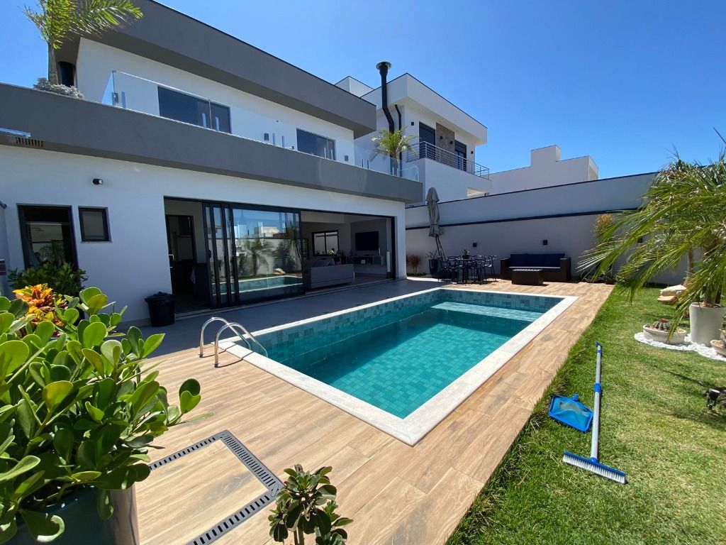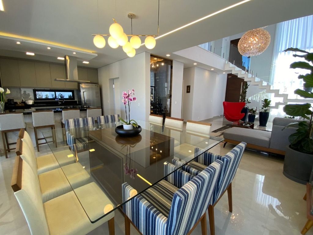 3 quartos, todos suítes no pavimento superior, com ar condicionado e 1 suíte reversível no térreo, também com ar condicionado. A casa possui energia foto voltaica, adega para 350 garrafas, sala para 3 ambientes, cozinha e espaço gourmet integrados, adega, uma linda piscina aquecida e um quintal com ótima privacidade!. Porcelanatos Eliane e Porto Belo e escada em Mármore Carrara, além de uma vista permanente incrível. Armários planejados de qualidade em toda a casa. Não perca de visitar essa oportunidade!