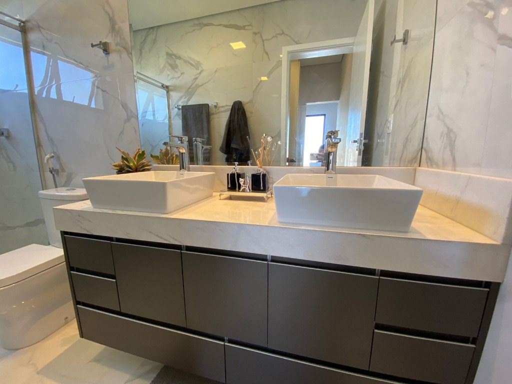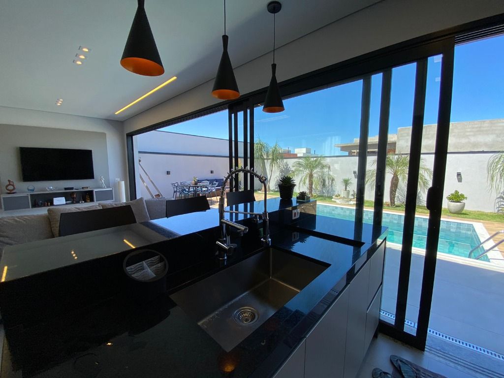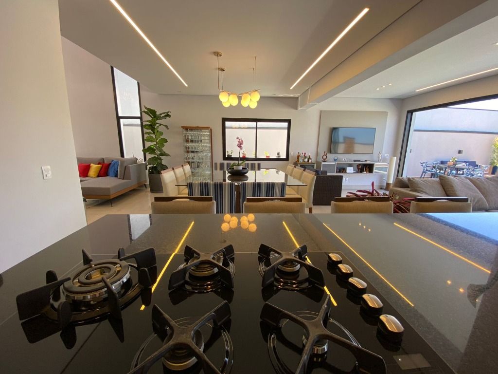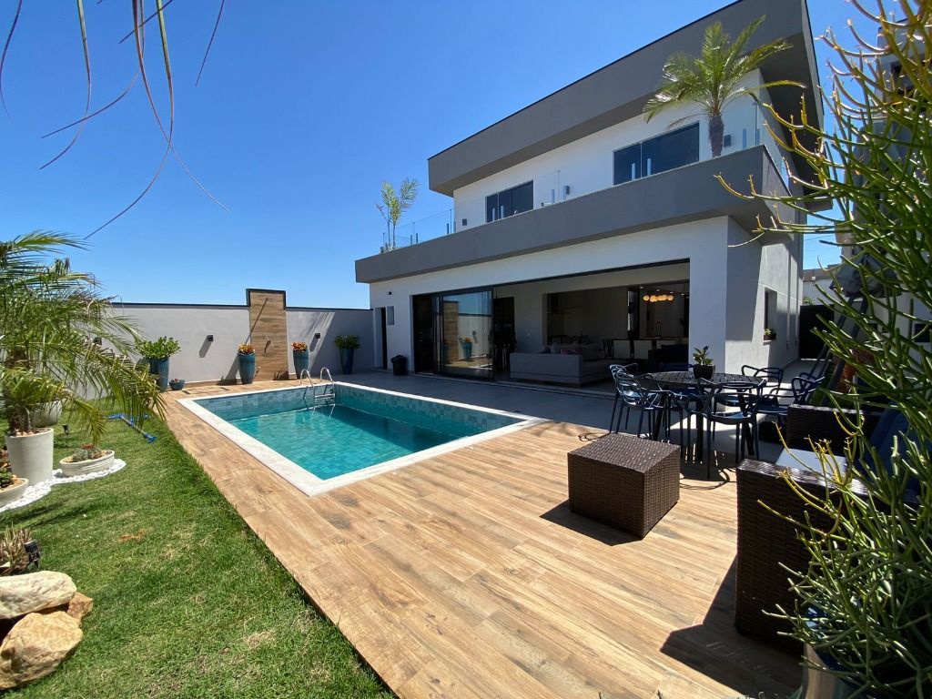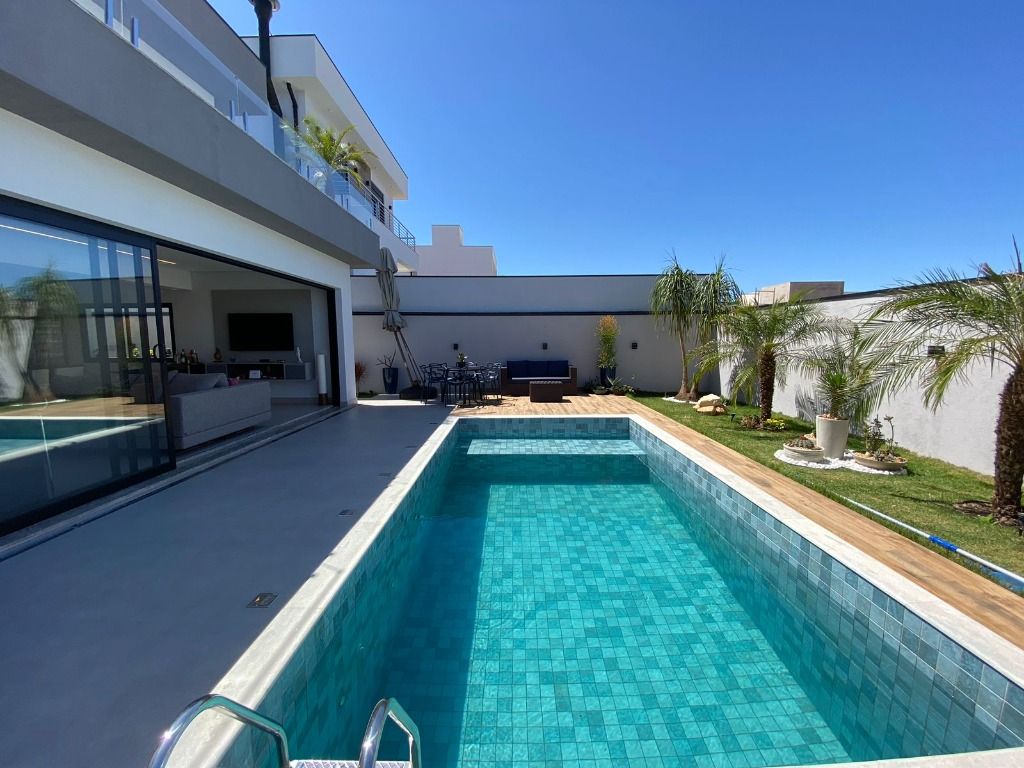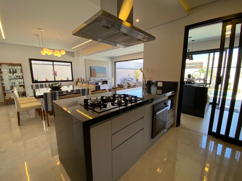 3 quartos, todos suítes no pavimento superior, com ar condicionado e 1 suíte reversível no térreo, também com ar condicionado. A casa possui energia foto voltaica, adega para 350 garrafas, sala para 3 ambientes, cozinha e espaço gourmet integrados, adega, uma linda piscina aquecida e um quintal com ótima privacidade!. Porcelanatos Eliane e Porto Belo e escada em Mármore Carrara, além de uma vista permanente incrível. Armários planejados de qualidade em toda a casa. Não perca de visitar essa oportunidade!