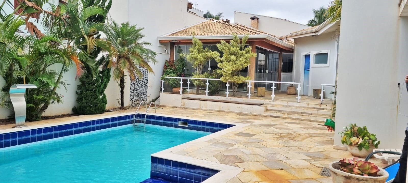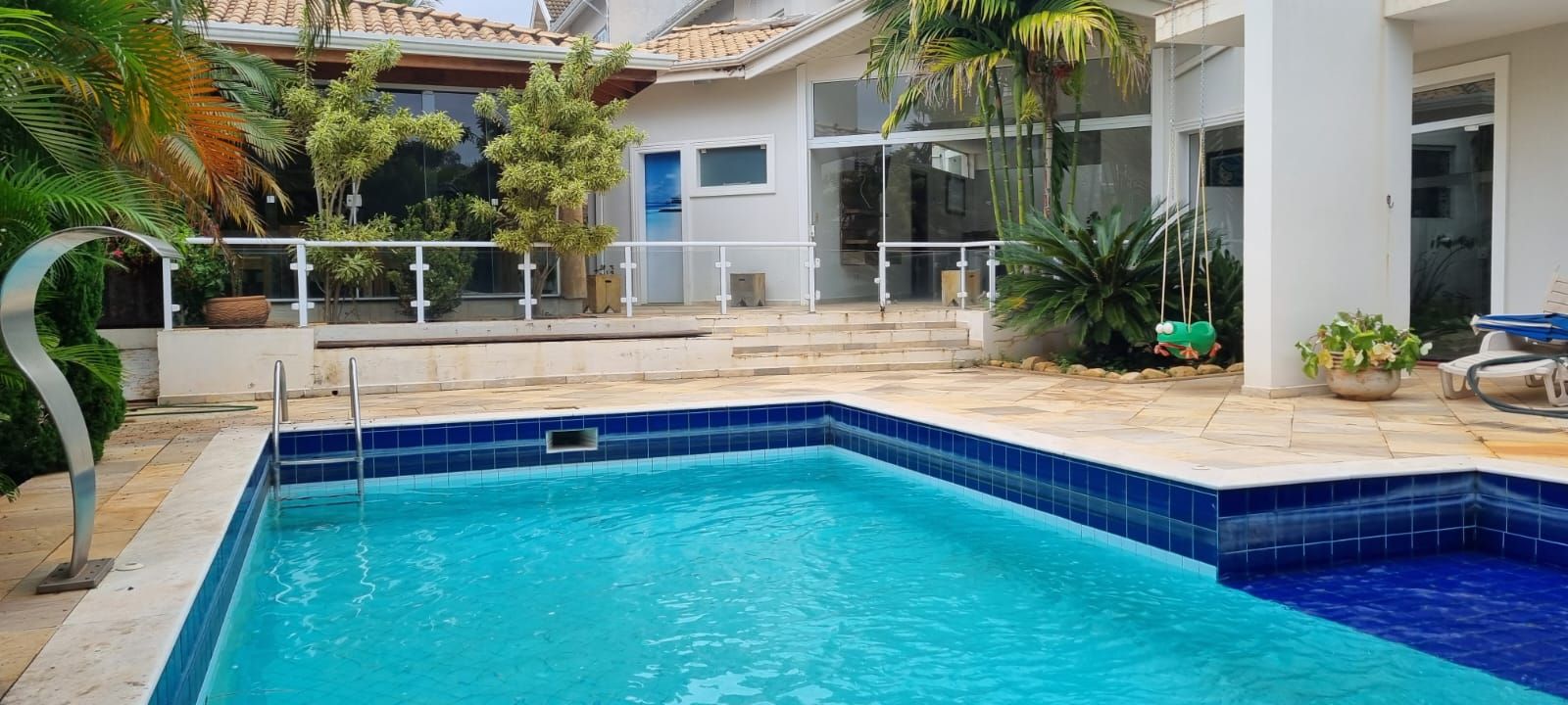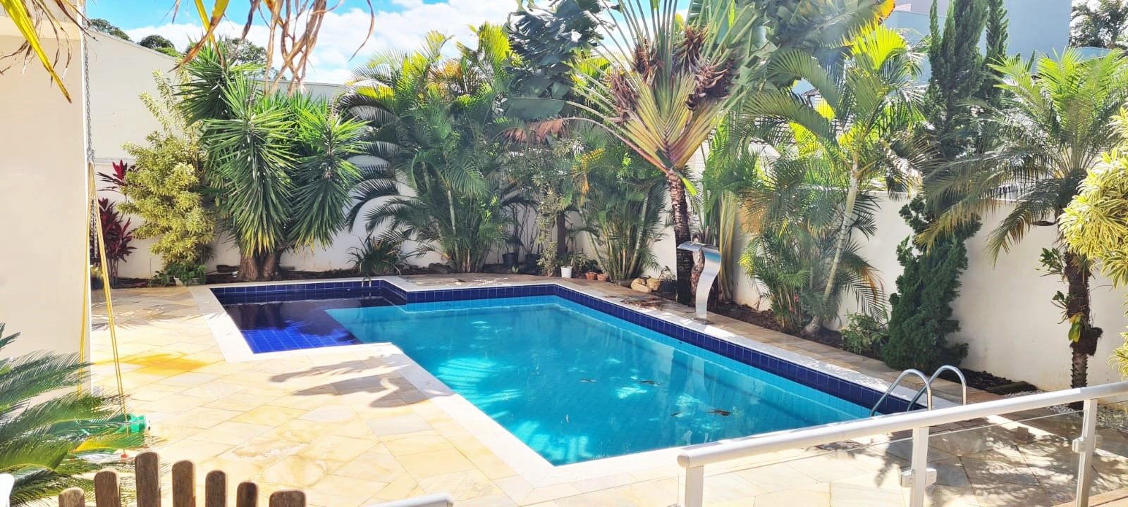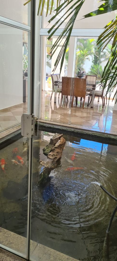 Casa com 5 quartos, sendo 4 suítes, 4 salas, cozinha, área gourmet, aquário, piscina, ofurô, maravilhoso jardim de inverno.