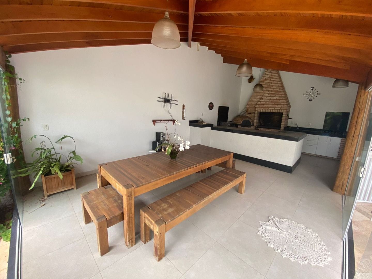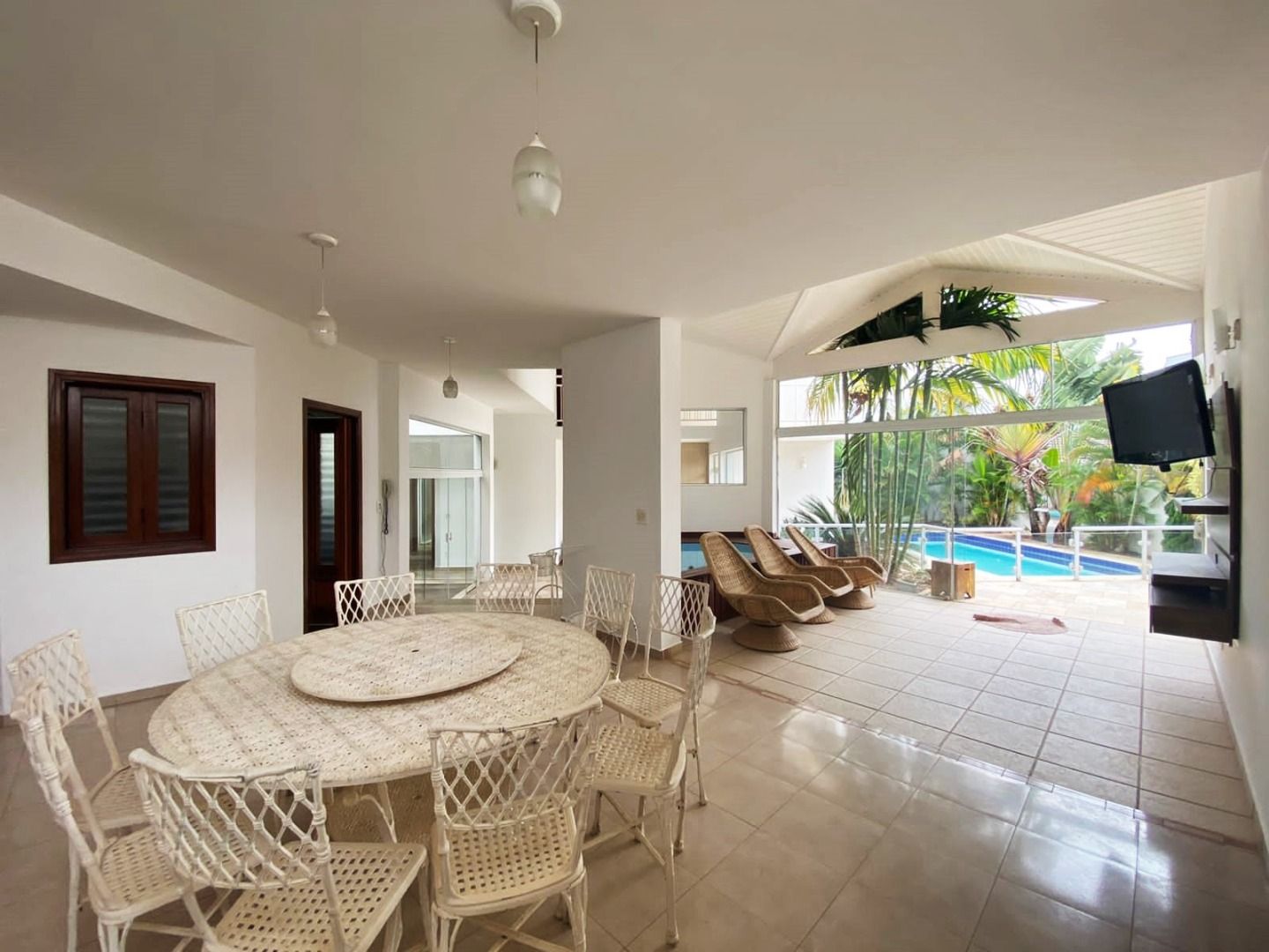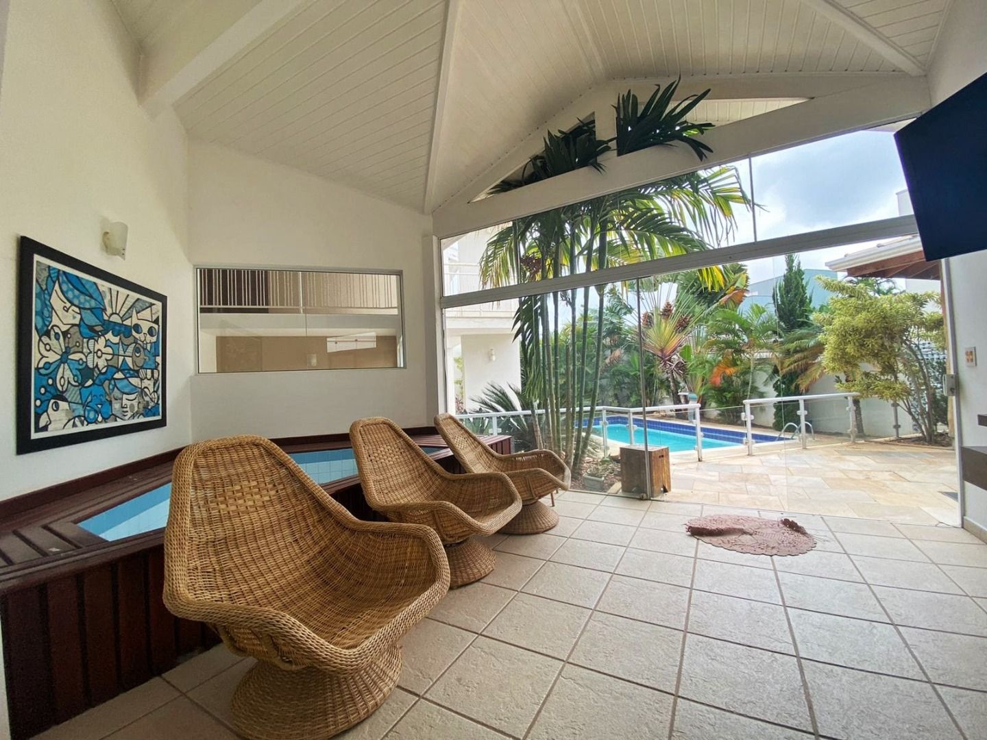 Casa com 5 quartos, sendo 4 suítes, 4 salas, cozinha, área gourmet, aquário, piscina, ofurô, maravilhoso jardim de inverno.