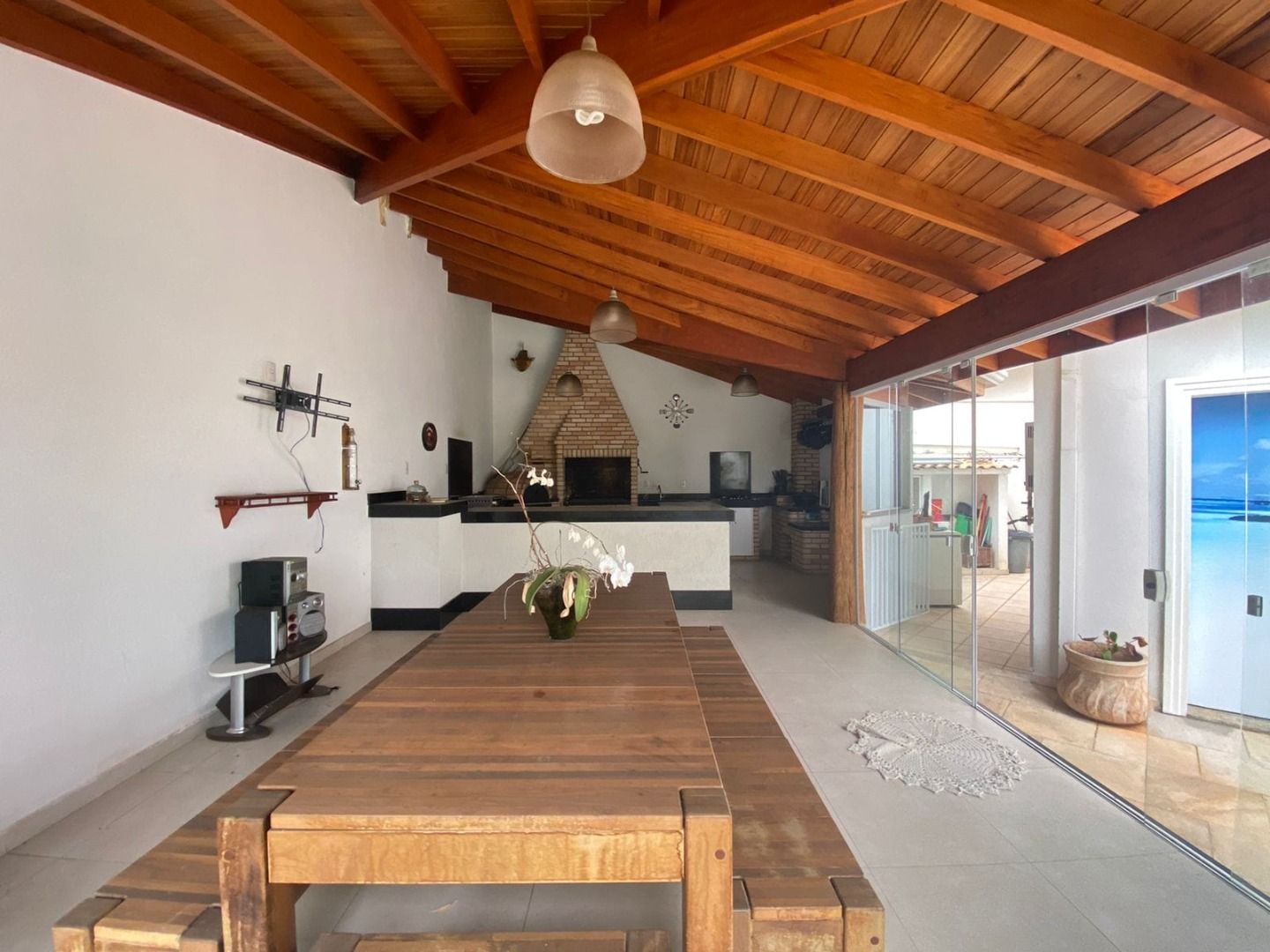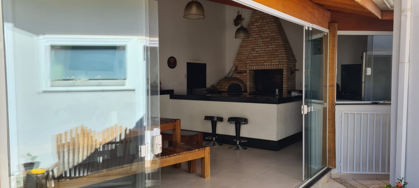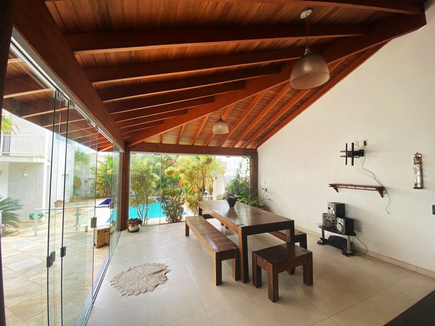 Uma elegante e espaçosa área com gourmet com linda vista para piscina!